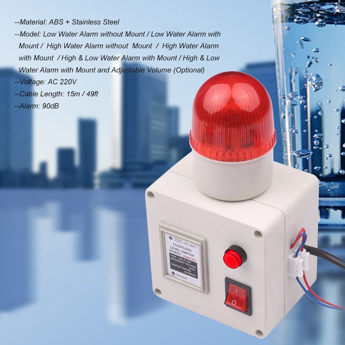 Model: Low Water Alarm without Mount / Low Water Alarm with Mount / High Water Alarm without Mount / High Water Alarm with Mount / High amp; Low Water Alarm with Mount / High amp; Low Water Alarm with Mount and Adjustable Volume (Optional)