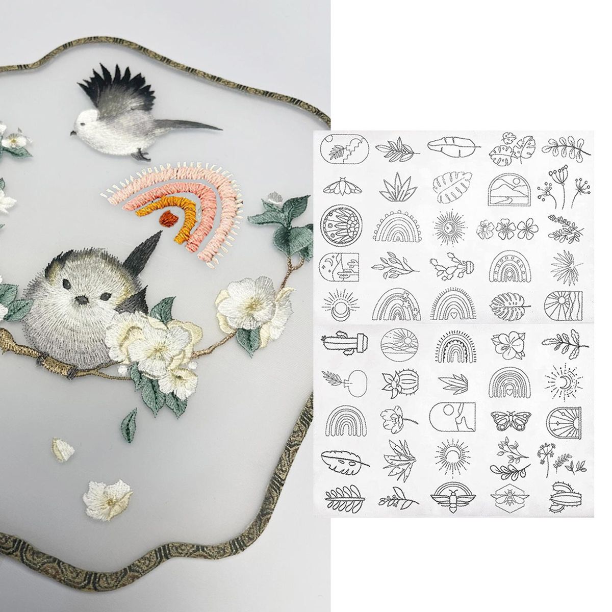 [Easy to Use]: Simply cut out and peel off the flower pattern backing from the lightweight stabilizer, stick the pattern onto your fabric or garment, and start embroidering. After completion, rinse or soak in warm water to dissolve the adhesive. Once dry, you will have a refined and exquisite flower pattern.