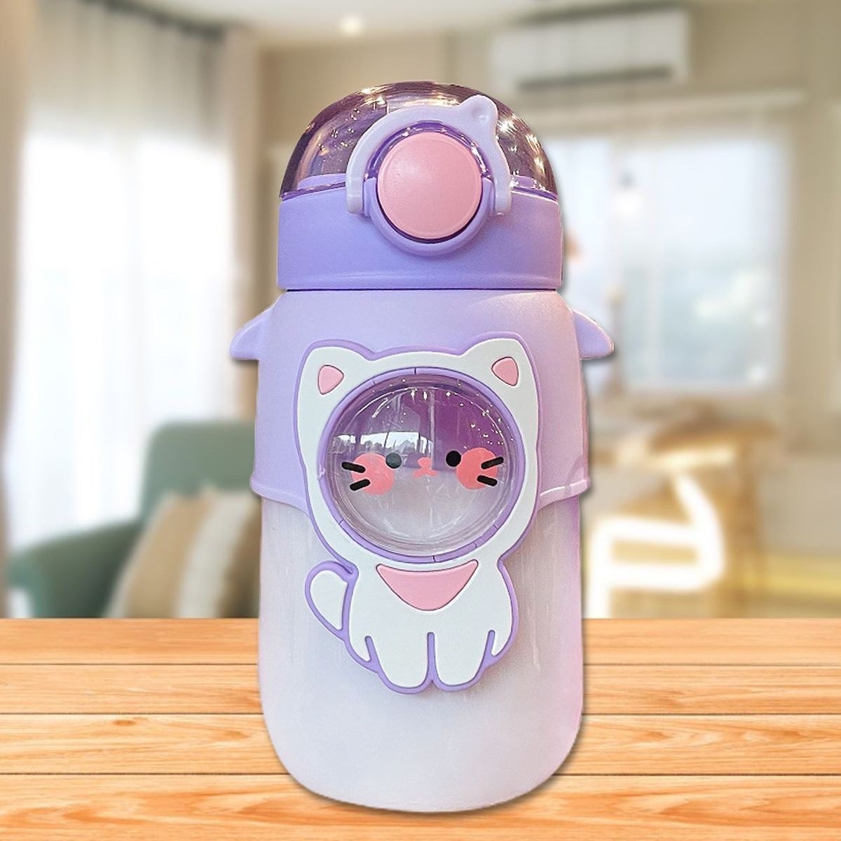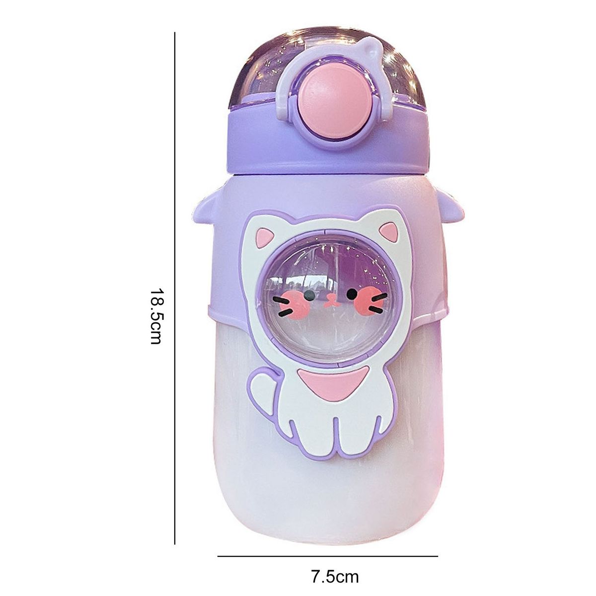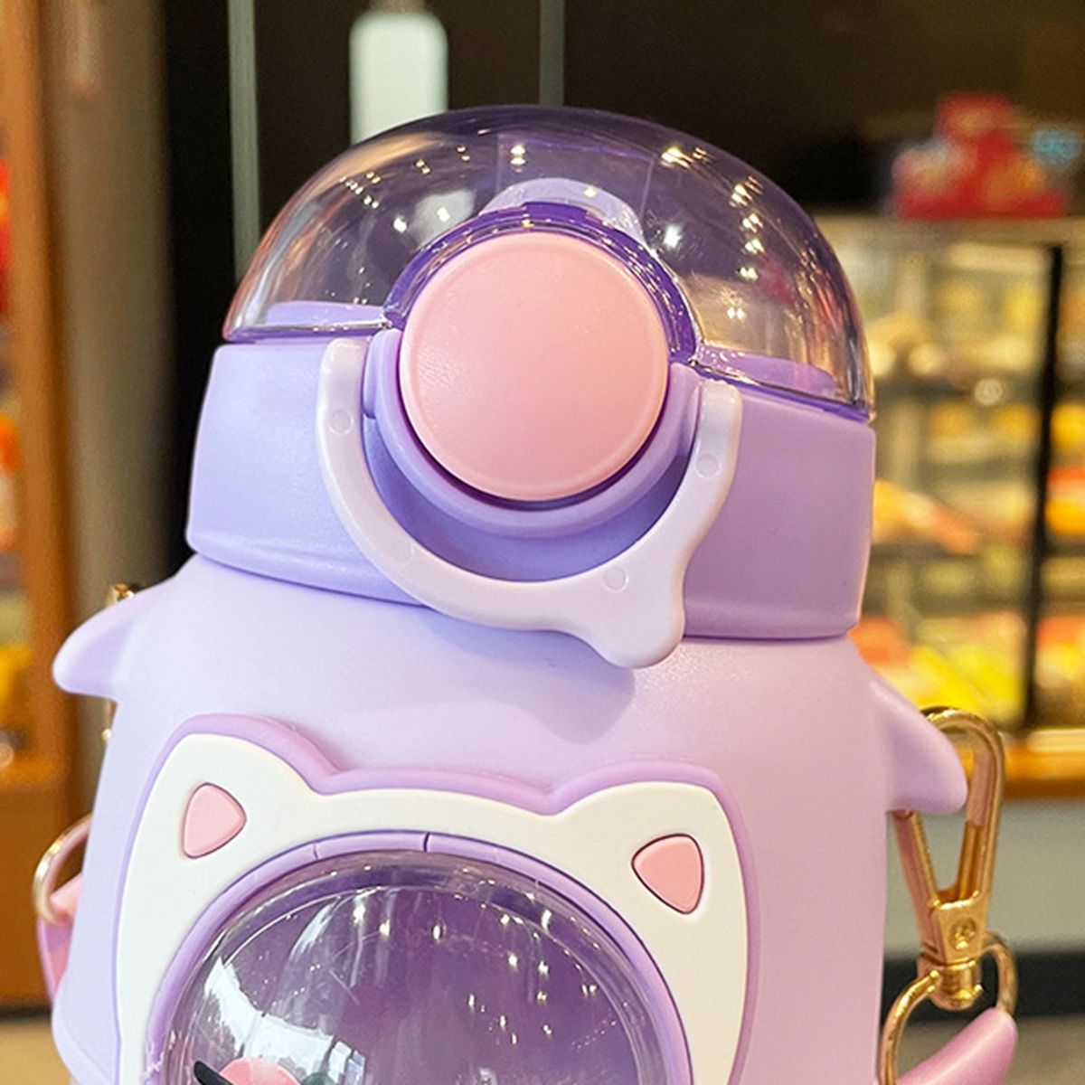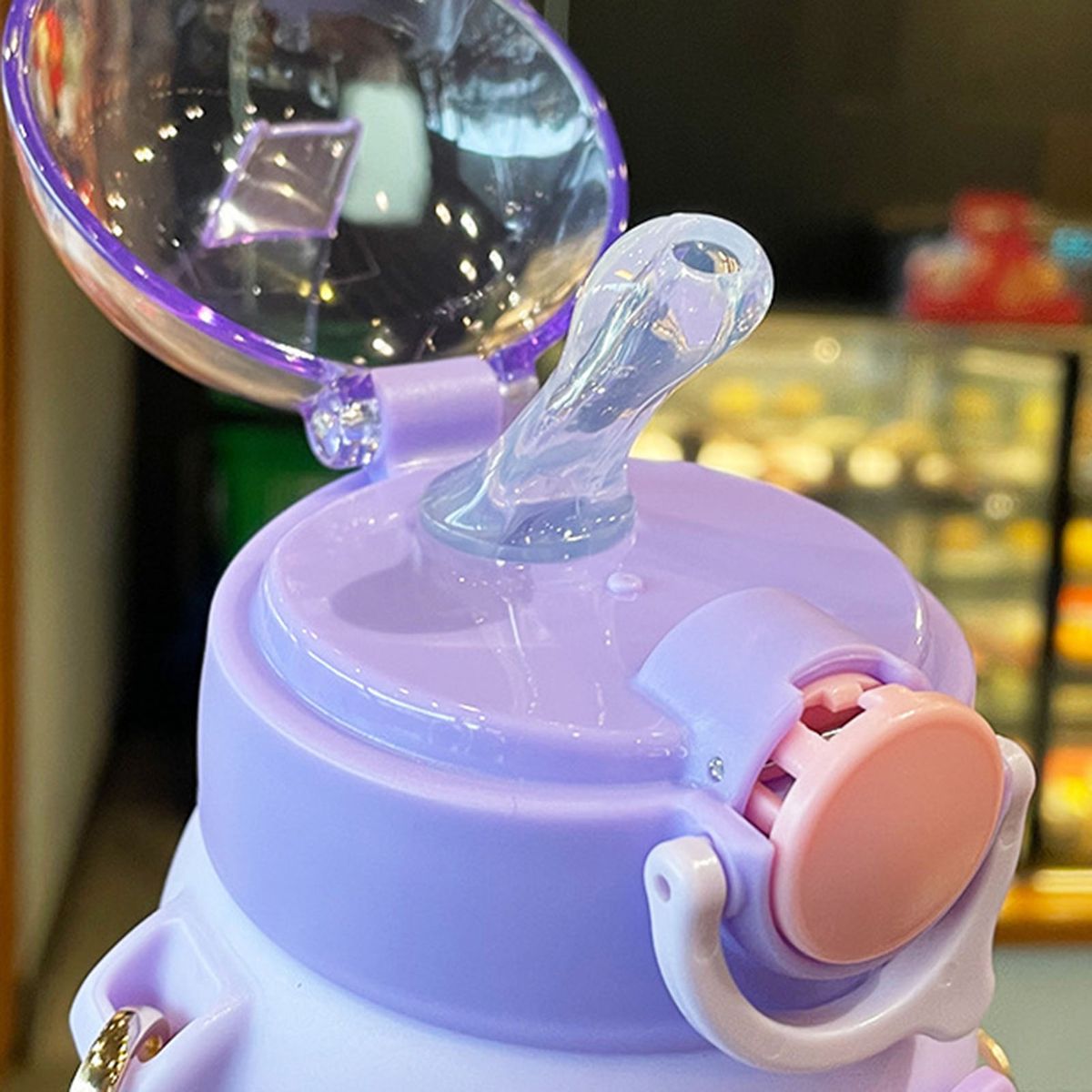 Featuring silicone straw, adjustable shoulder strap, and one-button unlocking design, this kid water bottle is easy to carry and can easily drink water even when they are on travel.
