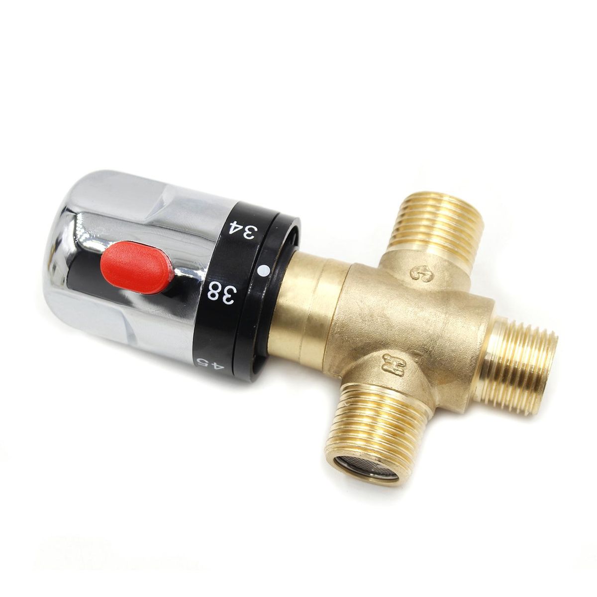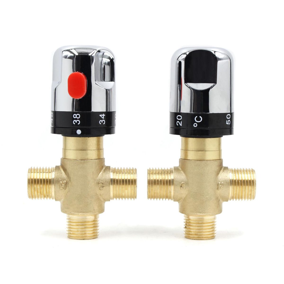 A thermal element is installed at the mixing outlet of the thermostatic water mixing valve, which uses the characteristics of the thermal element to move the valve core in the valve body, block or open the water inlet of cold and hot water. When blocking cold water, turn on hot water. When the temperature regulating knob is set to a certain temperature, no matter how the inlet temperature and pressure of cold and hot water change, the proportion of cold and hot water entering the outlet will also change, so that the outlet water temperature is always constant. The temperature regulating knob can be set arbitrarily within the specified temperature.