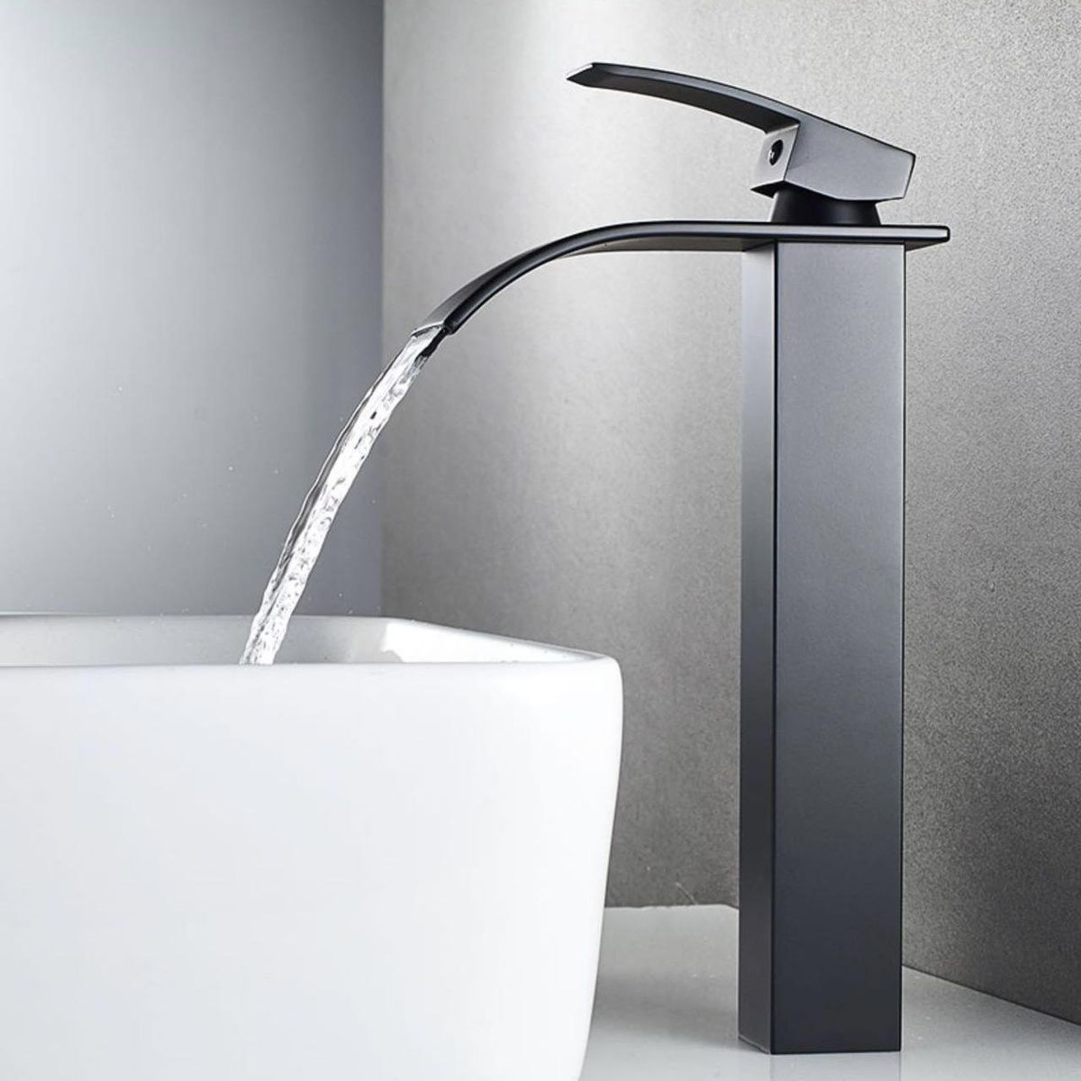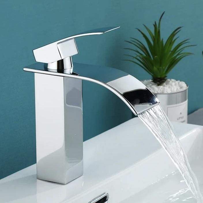 Buy Waterfall faucet factory direct sale Nordic black hot and cold flat mouth basin faucet 304 stainless steel countertop basin Electroplating flat mouth waterfall - standard With water inlet in Nigeria