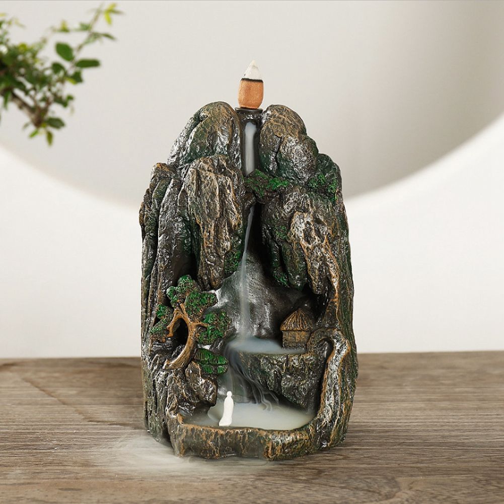 The smoke steam down like a waterfall, the incense burner surrounded by smoke, a mysterious atmosphere.