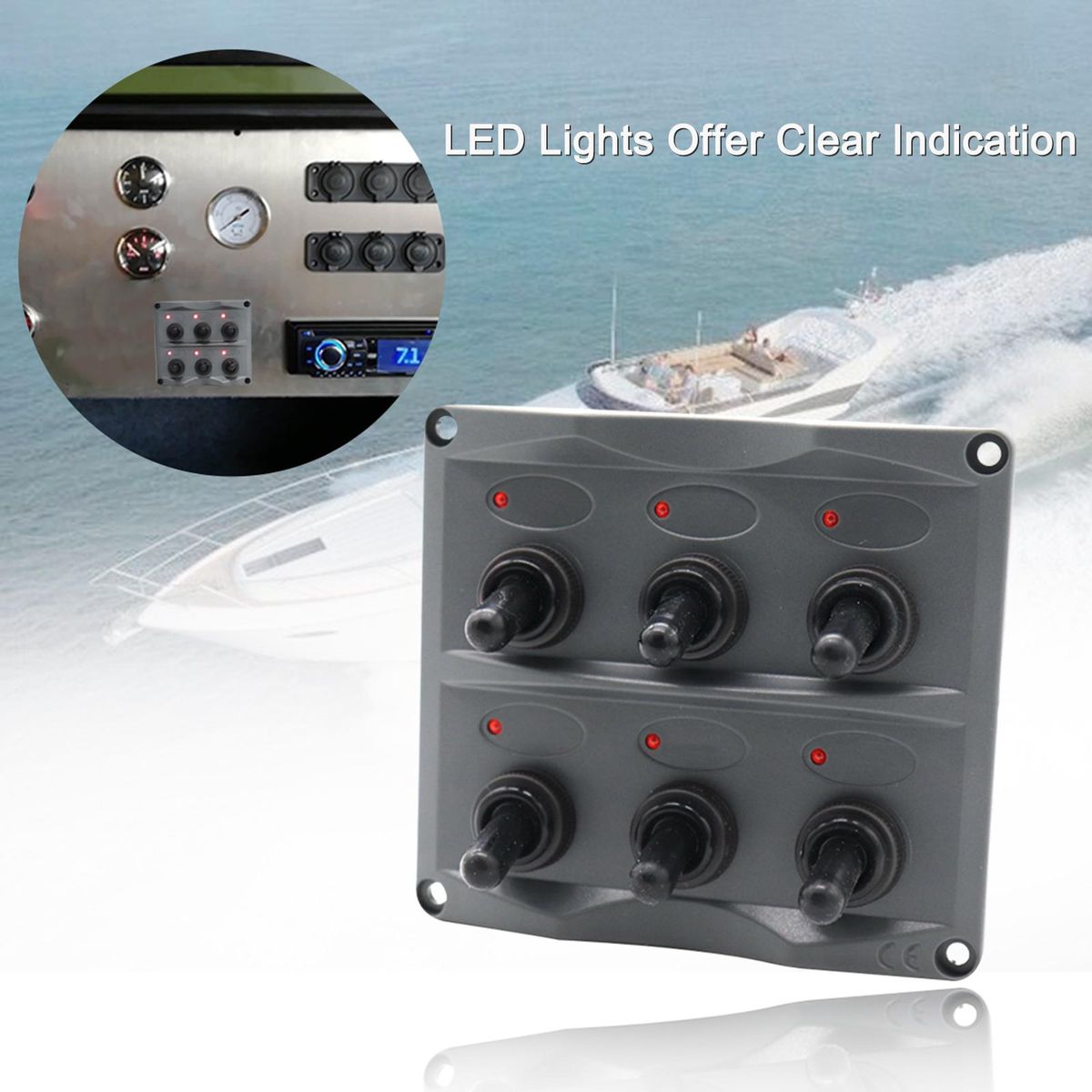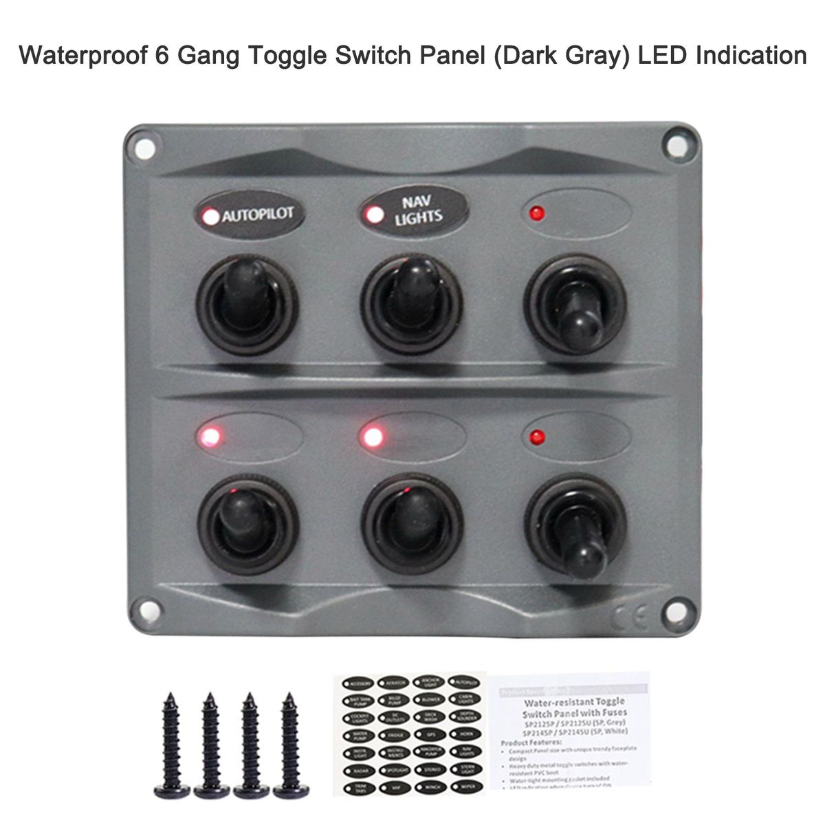 Buy Waterproof 6 Gang Toggle Switch Panel (Dark Gray) LED Indication with 28PCS Assorted Label Stickers in Nigeria