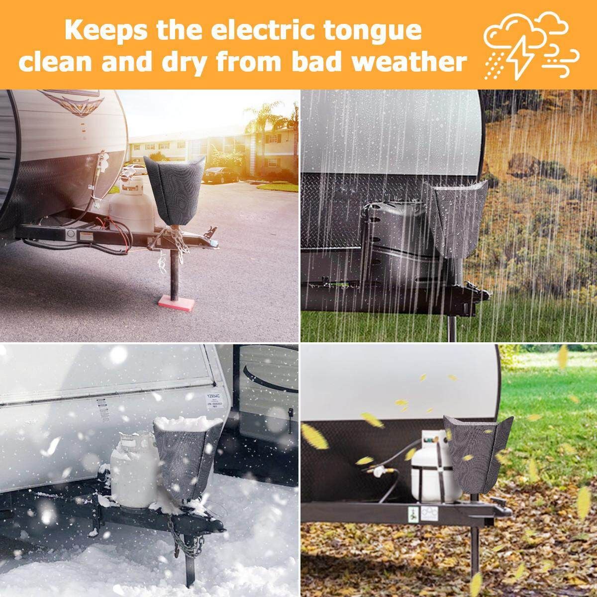Universal RV electric jack covers are an excellent solution for protecting the finish and prolonging the appearance of these systems. NEW - Each cover has 1/8″ strong and durable draw rope with a barrel cord lock in the hem for quick easy installation and removal. Recommended for storage . Fits to most RV Electric Trailer Jacks. This steadfast, strong and reliable fabric stands the of time in harsh marine environments and is a superior choice because of its extremely high resistance to tearing. It is great in UV and mildew resistant. It is extremely water repellent yet breathable to help allow interior moisture to escape, an important factor in maintaining the health of your RV Electric Jack's components and reliability.