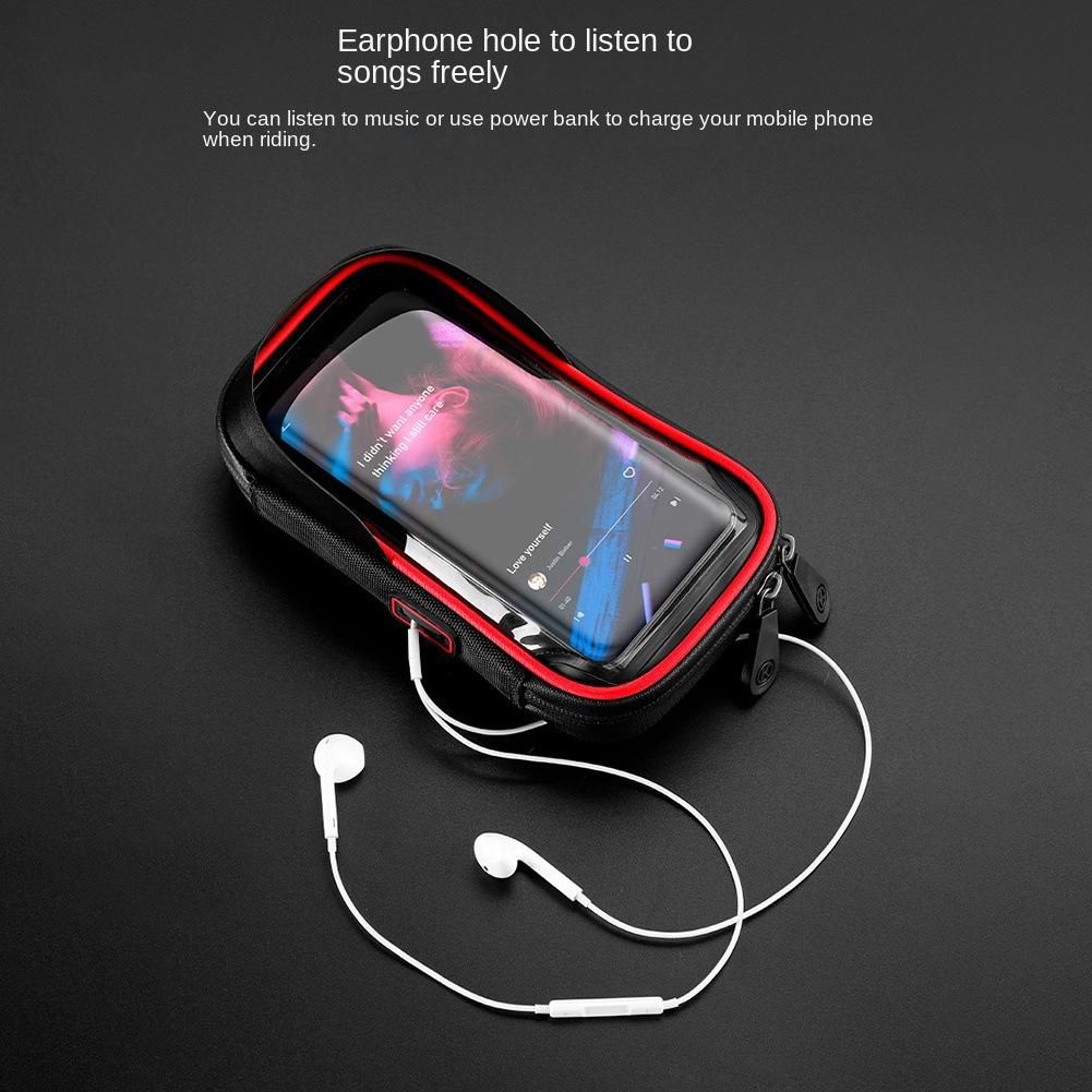 Storage design and earphone jack, 360° rotation and purchase without maintenance-This bicycle bag has a storage design, you can put some small things, such as keys, wallets, pens, small repair tools, etc. The headphone jack allows you to easily listen to music while driving or use headphones to answer calls. 360° rotation allows you to adjust the bag at any angle and display it in portrait and landscape format. We will be here. color:Black