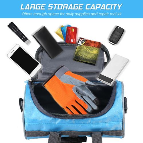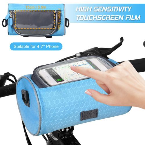 a clear PVC window for touchscreen mobile phone, and a large main pocket that has enough space for your cycling accessories. It is easy to install on the handlebar and can also be used as a shoulder bag with the removable shoulder strap.