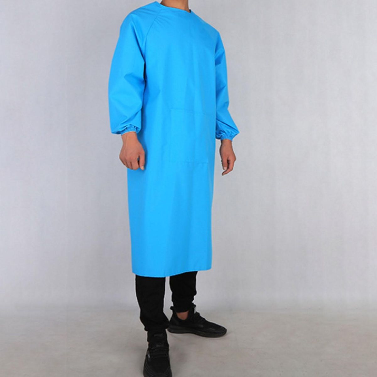 The apron comes with large waterproof pockets that provide ample space to store your personal belongings securely. it also boasts elastic sleeves and is waterproof and oilproof, ensuring maximum protection during use. the unique reverse wear feature adds a touch of versatility to its design.