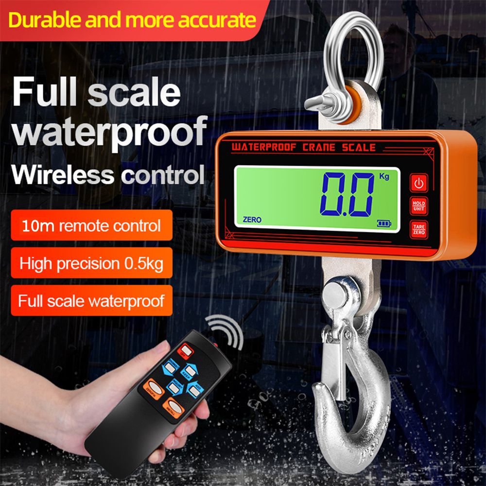 Our hanging crane scale is fashioned high performance and quality, made from stainless steel and aluminum alloy. It won't rust, won't weaken at the joints, and won't break. Equipped with a remote for further applications, suitable for ocean fishing, steel weighing, dock weighing, etc.