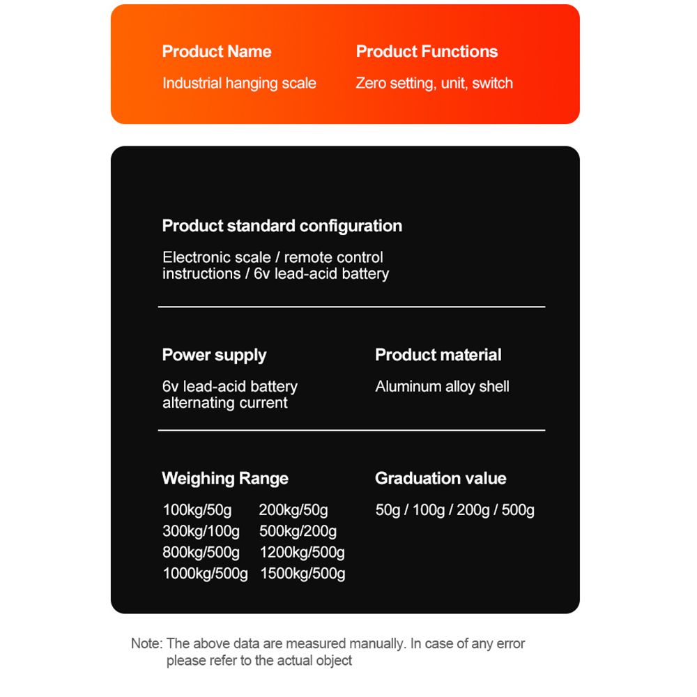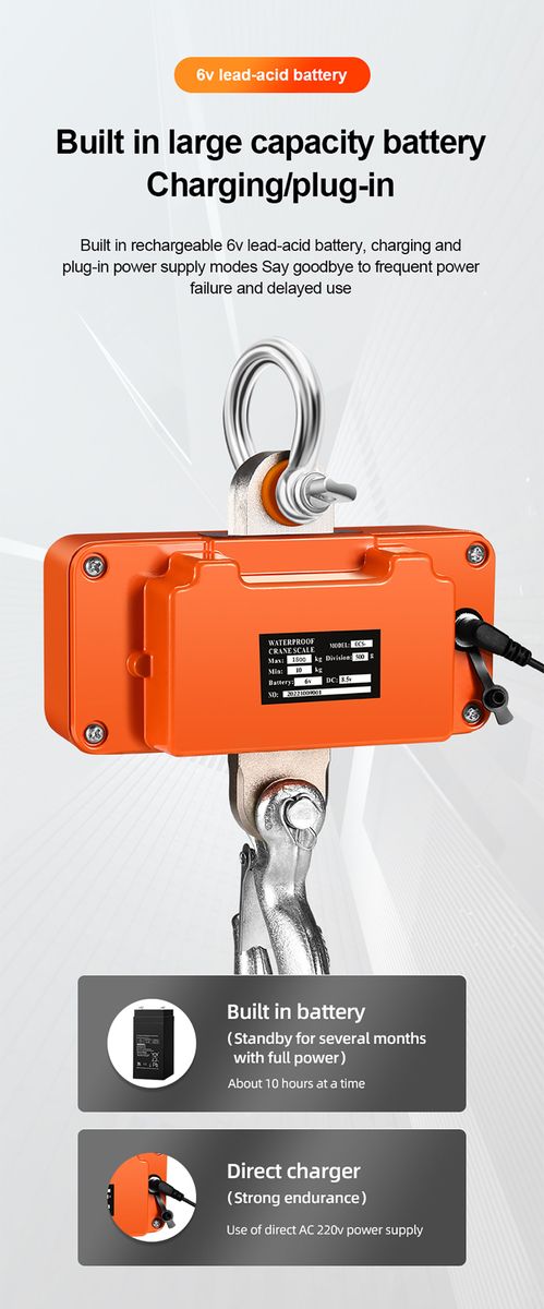 【High Precision】 The digital hanging scale with a max capacity of 1500 kg/3000 lbs, is equipped with an accurate sensor, has high measurement accuracy and the division of the crane scale is only 0.5kg.