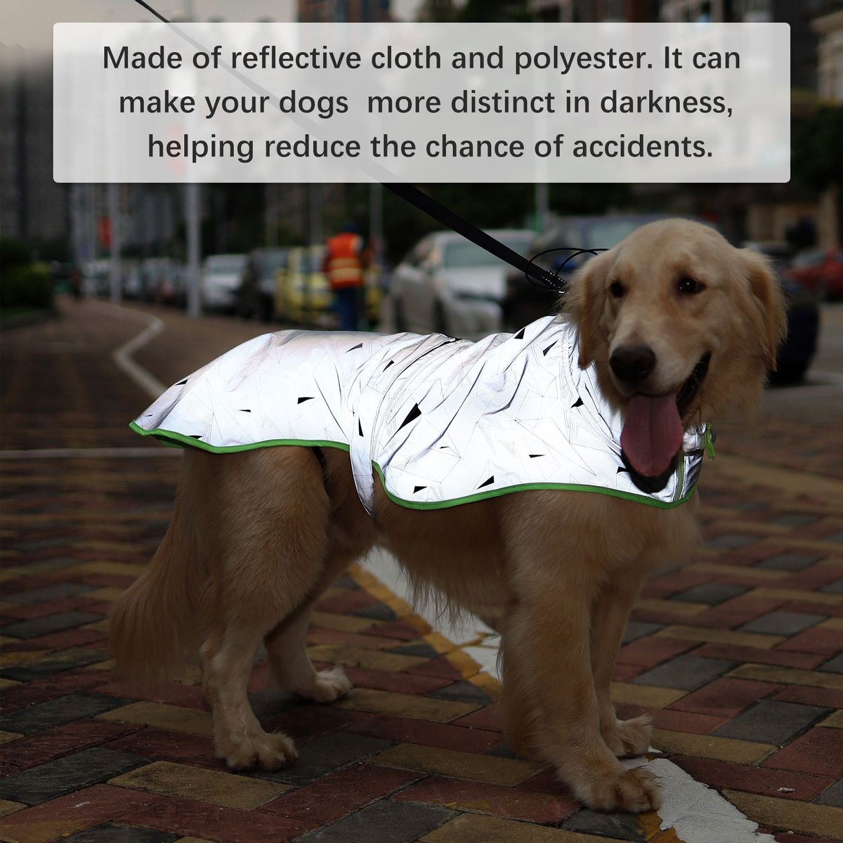 Made of reflective cloth and polyester. It can make your dogs more distinct in darkness, helping reduce the chance of accidents.