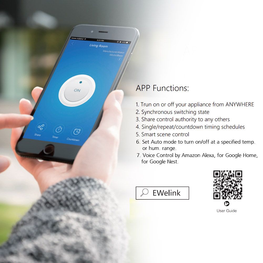 Features:*App Support: Free iOS and for Android mobile App eWeLink.