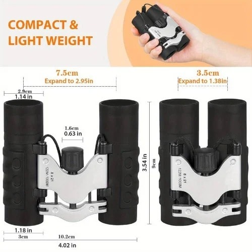 Portable Size: Our bird-watching binoculars have a compact size: of 18 & times;14.5x6cm/7 & ldquo;x5.7 & ldquo;x2.36 & rdquo;, lightweight design, can keep in a backpack and pocket, easy carry.