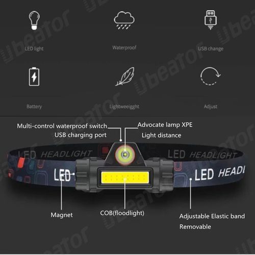 1.Portable small USB charging Led Headlamp,Double light lighting Far and near,Hands free,High brightness lighting,Low energy consumption,Persistent high light lighting.IP65 Waterproof,Heat-Resistant,Frost-Resistant.