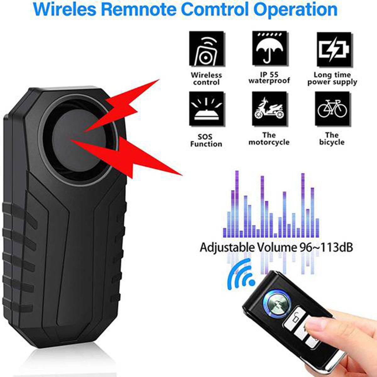 Vehicle search function, easy to find your vehicle by 6 kinds of bells ------ 3 adjustable volume, up to 113dB