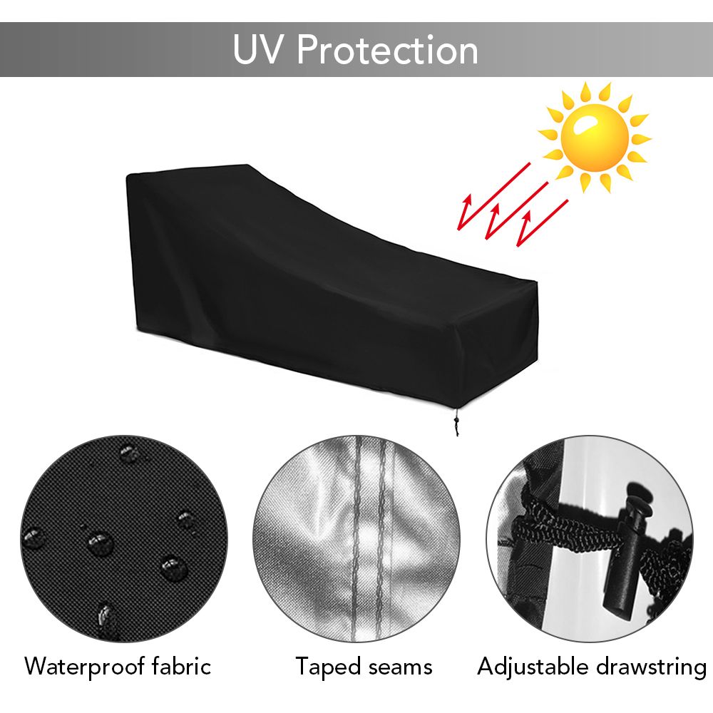 This chair cover is made from high density 210D oxford fabric with sliver coating, weather-resistant, waterproof, offers constant protection from dirt, dust, pet hair, debris, sunlight. Perfect for indoor and outdoor use.