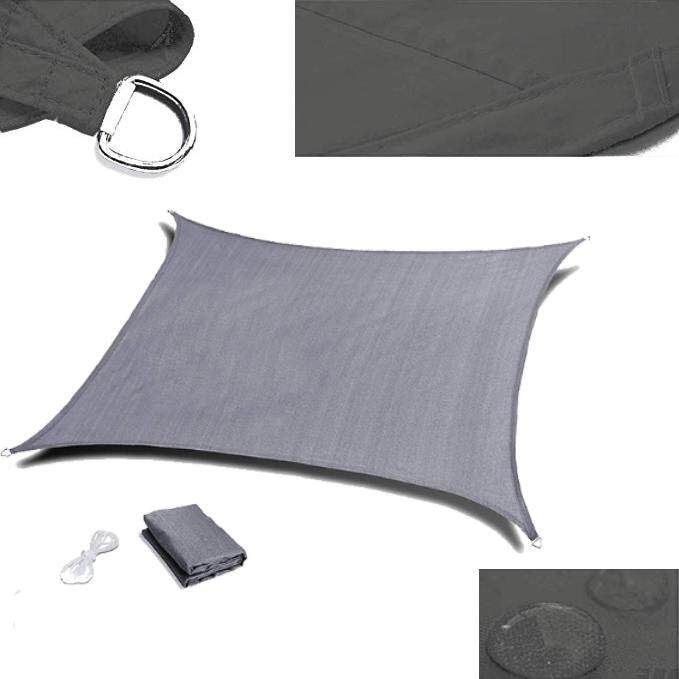 Waterproof Shade Sail Anti-UV Sunshade Net Outdoor Garden Sunscreen Sunblock Shade Cloth Net Plant Greenhouse Cover Car Cover Features: This Sun Awning Mesh makes a restful, shady spot on your Balcony, patio, backyard, playground, park, deck, swimming pool, also can be used on the beach, for outdoor camping,ect. Allow you enjoy good weather every day!!! Effectively reducing heat in your outdoor living areas. With 4 metal rings in total, easier to hang on and more durable. Foldable Portable: Can be fold easily, and it is lightweight , very convenient for carring. 185GSM High Density Polyethylene Farbic: ①185g/m2, super heavy and eco-friendly. ②90% sun light and UV Rays blocked. ③Permeable, heat, cold, oxidation, corrosion and radiation resistant. ④best for sun shading, meanwhile allow the air flow through it, so it can keep cooling in summer and keep warm in winter. Easy to install and remove, durable. Easy maintenance, easy to clean with sponge and cloth. Curved design on edges to make installation beautiful. All edge and corner are fine hemmed, very durable. It's perfect serve as cooling shade, scenic shade travel shade, auto shade, plant shade in your courtyard, gardern, balcony, garage, deck, patio,pool or entertainment area and so on. Specification: Material : 185GSM HDPE Fabric : Sand Shape : rectangle Size : Triangle: 2x2x2, 3x3x3 Rectangle: 2x3, 2x4 Size of Ropes : L=1.5m, D=3.5mm Material of Ropes : Nylon Size of D-Rings : M5 (D=5mm) Material of D-Rings : 316 Stainless Steel : Grey Please note:
