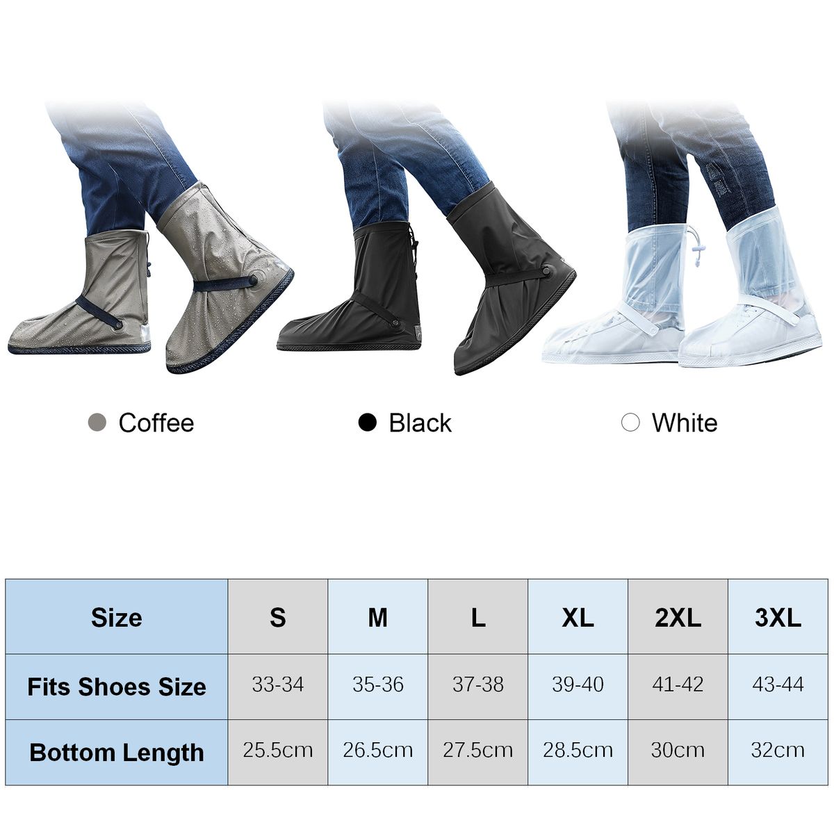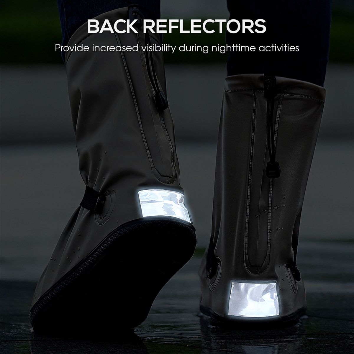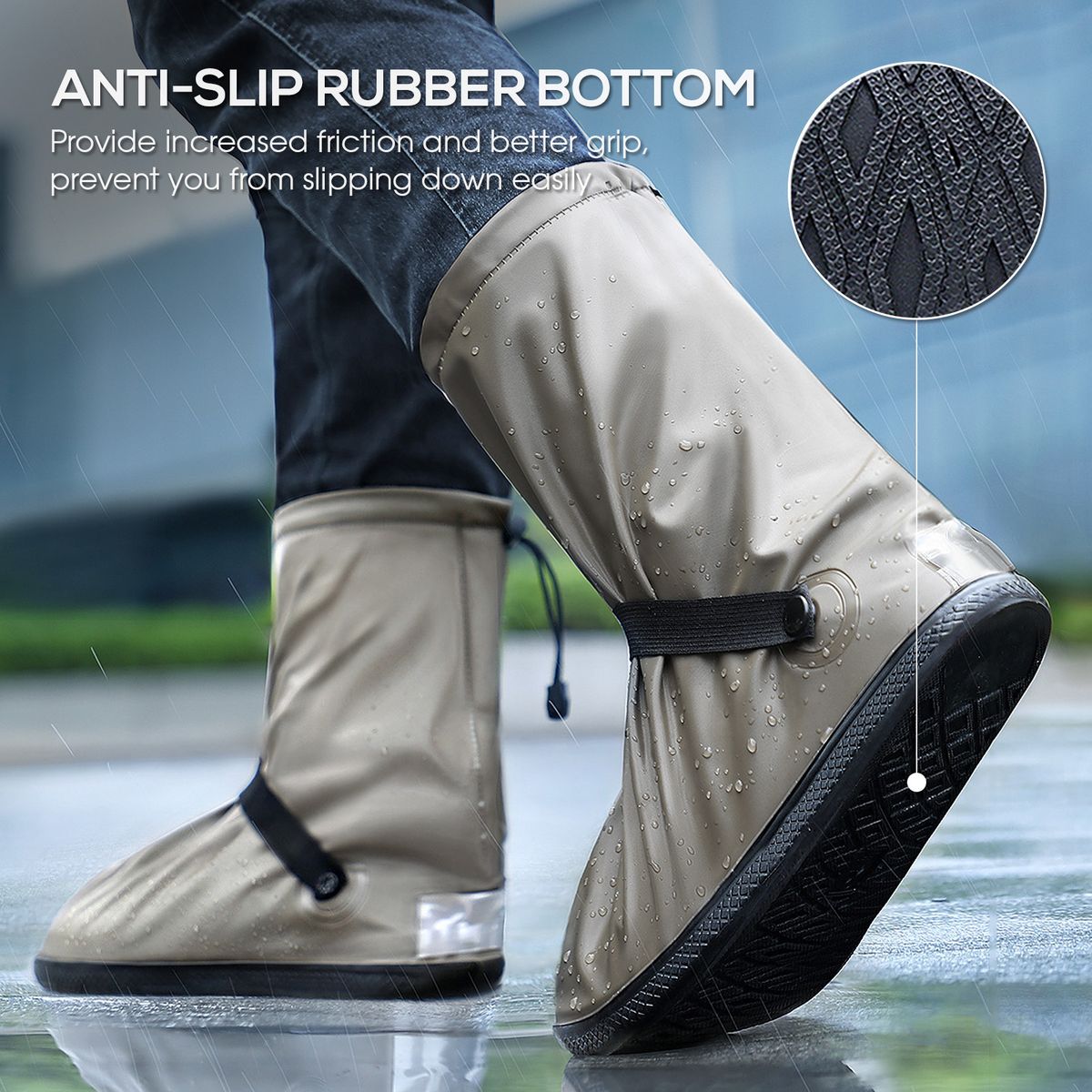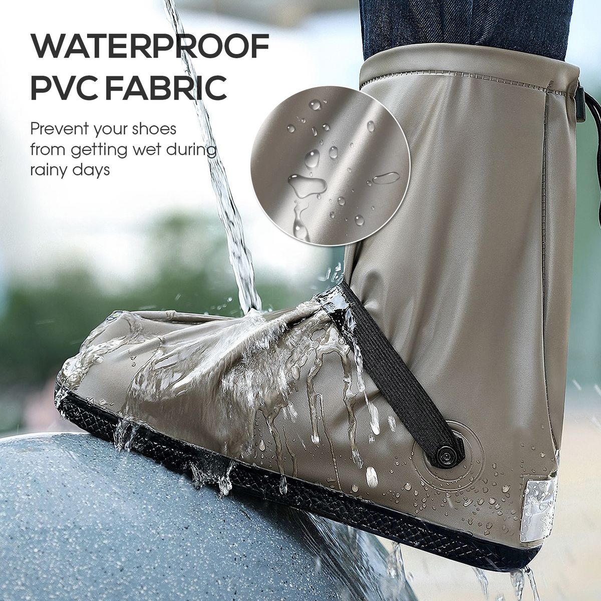 Waterproof PVC fabric and reinforced stitching prevent your shoes from getting wet during rainy days.