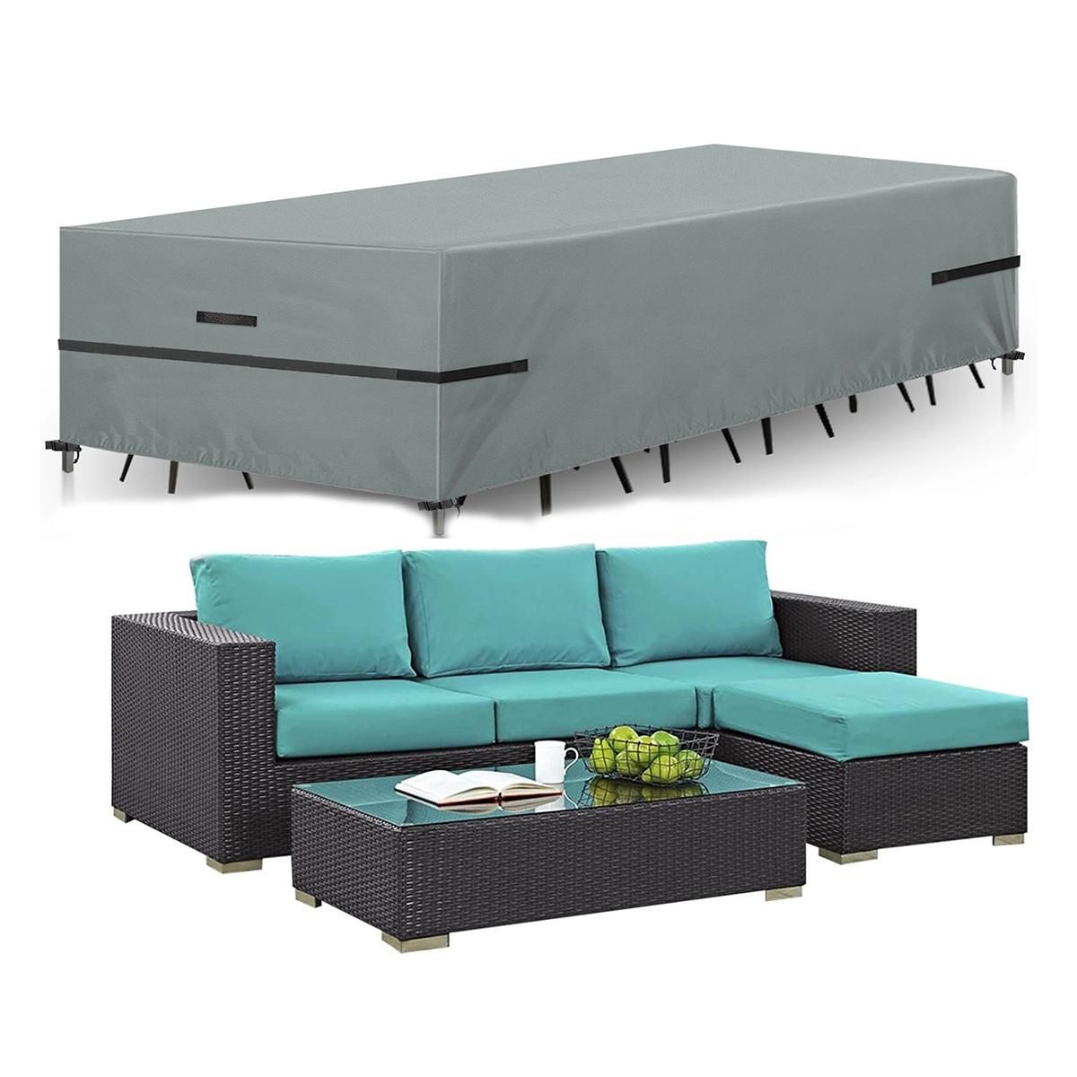 [SAFE AND WINDPROOF DESIGN]: The garden furniture cover is securely fastened with 2 Buckle straps, 4 clasps and drawstrings. Never worry about your garden furniture cover being blown away in strong winds, thanks to the Buckle straps on both ends near the ground to securely hold the cover. Protect your furniture from being blown away on a windy day by securing it securely with the buckles on the bottom of the furniture.