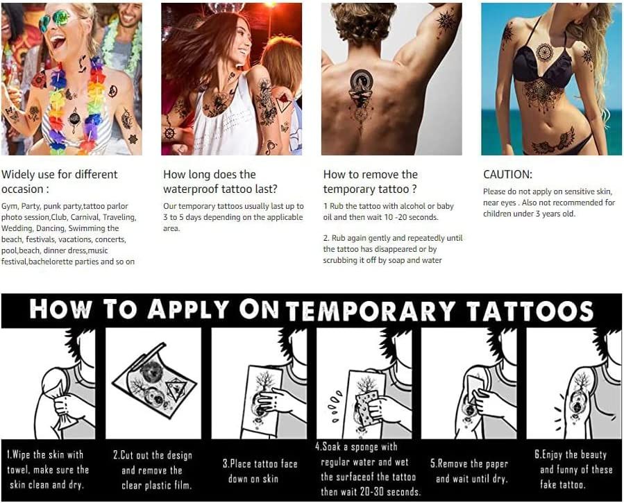 - APPLICABLE OCCASIONS. Wear our temporary tattoos whenever and wherever you want! Great for Halloween costume, gym, party, punk party, tattoo parlor photo session, club, carnival, traveling, wedding, dancing, swimming the beach, festivals, vacations, concerts, pool, beach, dinner dress, music festival, bachelorette parties and more.