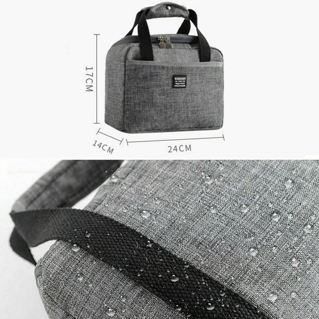 [Package included]: 1pcs x lunch bag[Features]:-1. The product is made of high quality, waterproof and lightweight materials.-2. thickened aluminum film inside for durable heat preservation.-3.Large open design can store bento, fruit, drink, etc. for easy access.-4.Front insert pocket design is convenient for storing small items such as paper towels, key utensils, etc. at any time.-5. Small, intimate helper that keeps food warm for travel picnics and work.[Note]-1. Due to different production batches, product details may be a little different. If you know the difference, please buy it carefully.-2. Please allow 1-3CM differences due to manual measurement.-3. Due to the different display and different light, the picture may not reflect the actual color of the item. Thank you for your understanding.