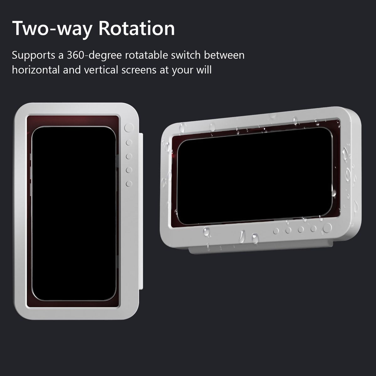 [Two-way Rotation]This waterproof shower phone holder supports a 360-degree rotatable switch between horizontal and vertical screens at your will.