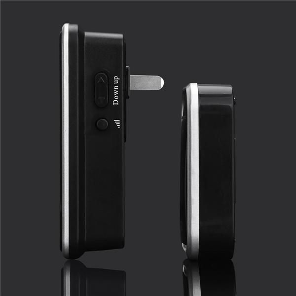 Specification:Color: BlackPlug type: EU / USRingtone: 38 piecesRange: 300 meters in the open areaDigital circuit design, not crosstalkVolume: 3 levelsTransmitter Power source: 12V 23A alkaline battery (battery is not included.)Receiver power source: AC 110 / 240V socketTransmitter size: 77x41x20mmReceiver size: 102x63x28mm