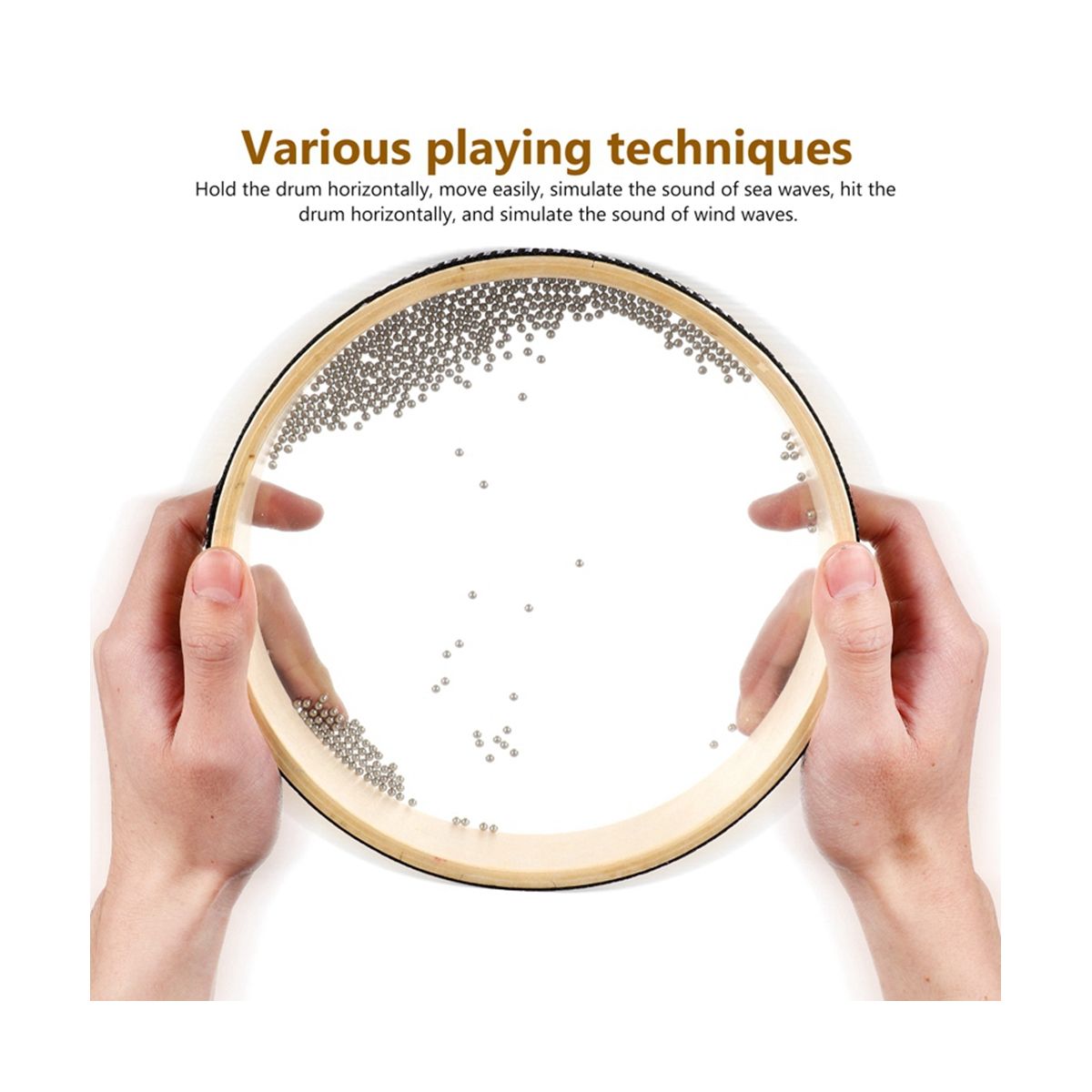 Wave sound effect These ocean drum instruments can create the sound of the ocean with swirl-like sound effects creating a relaxed and cheerful atmosphere allowing you to enjoy the melodious sound of the blue sea making you feel like you are on the sea