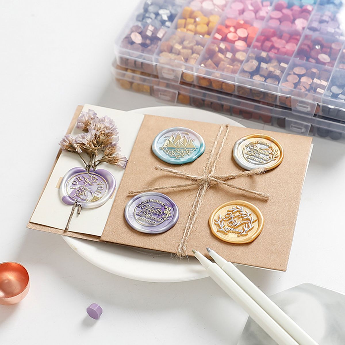 These wax seal beads are stored in a transparent storage box. Each compartment is filled with the same color, convenient to use. Mixed color matching makes the sealing wax different and more beautiful.