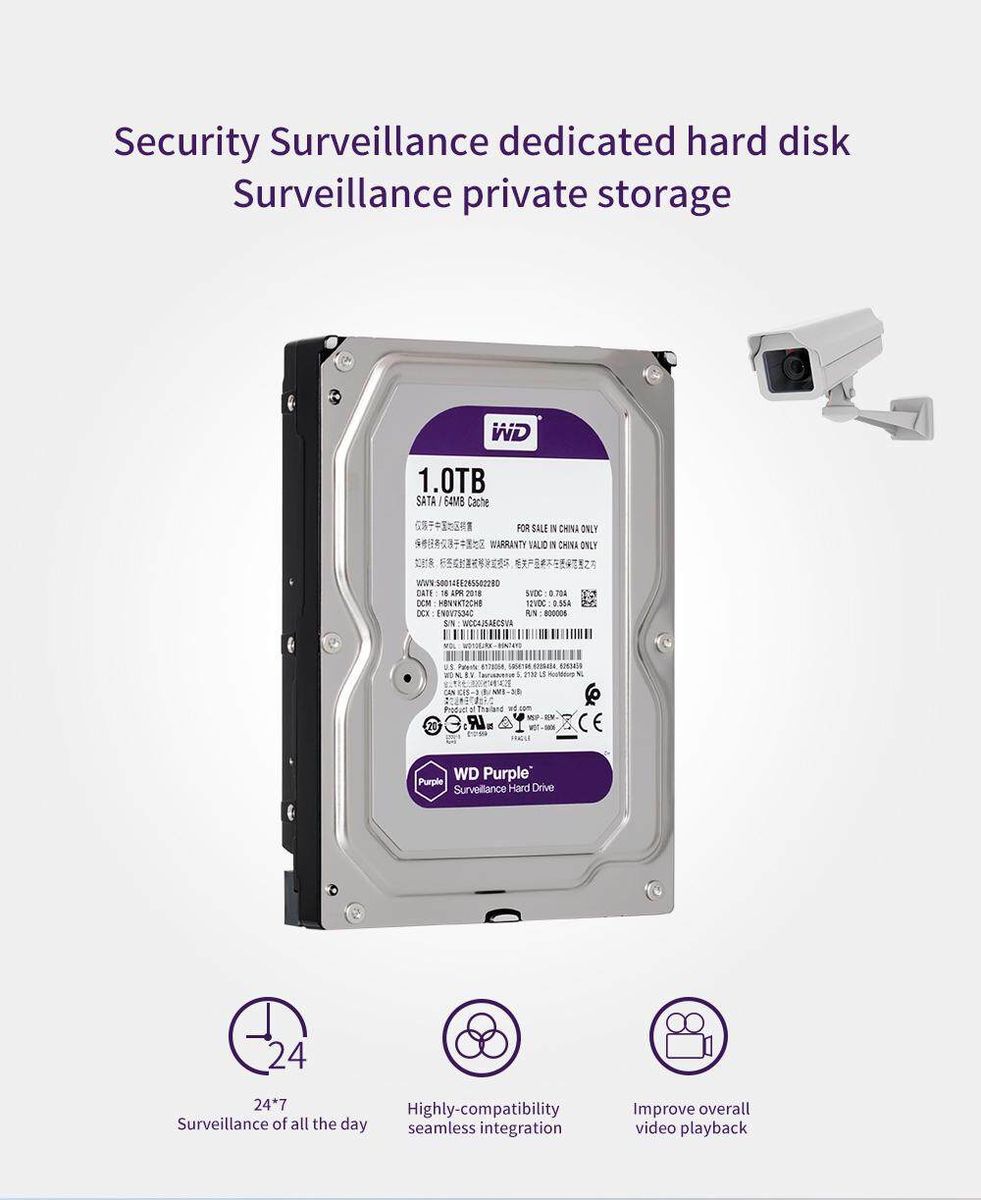 Engineered for compatibility WD Purple hard drives are built for compatibility with industry-leading chassis and set manufacturers for seamless integration into your new or existing video system.