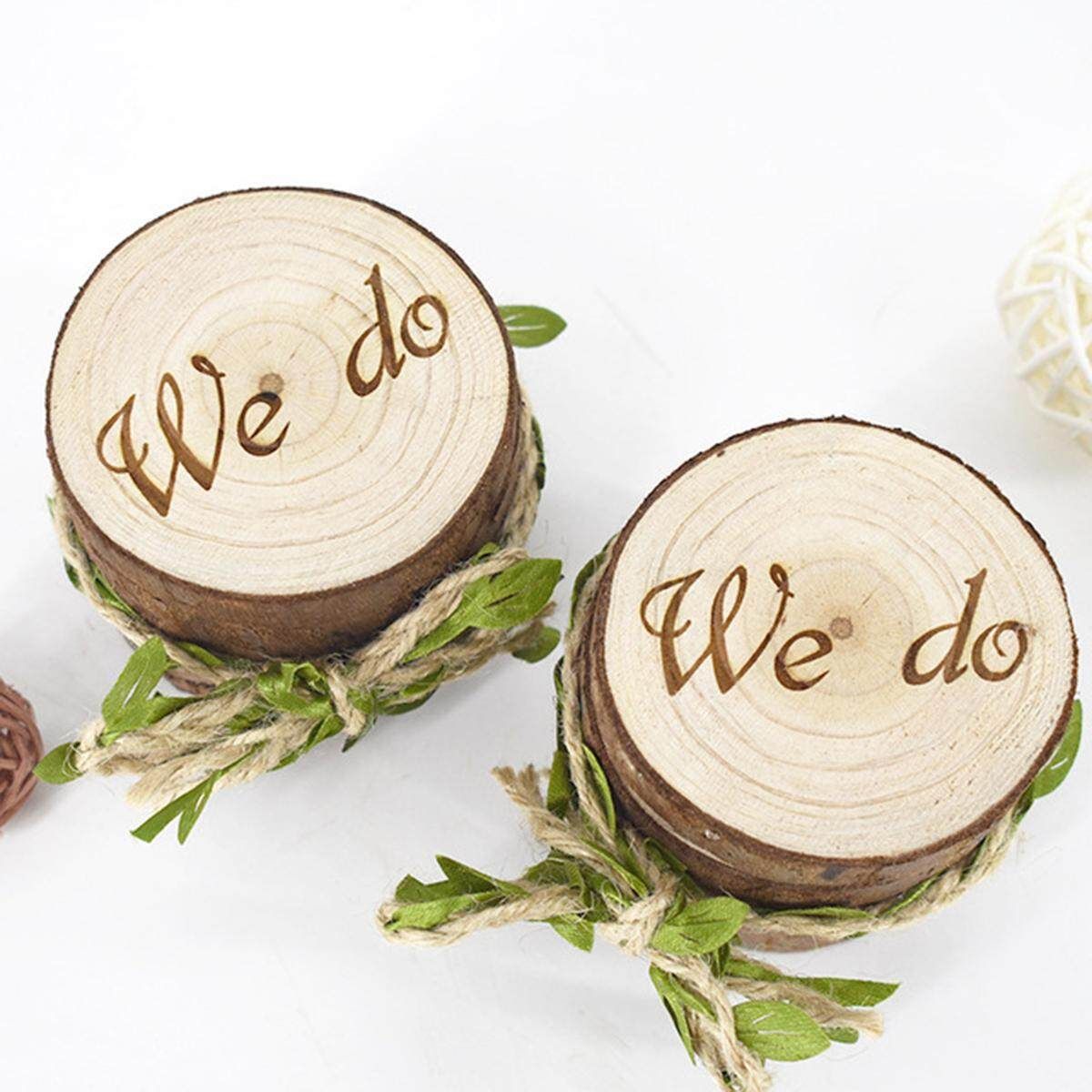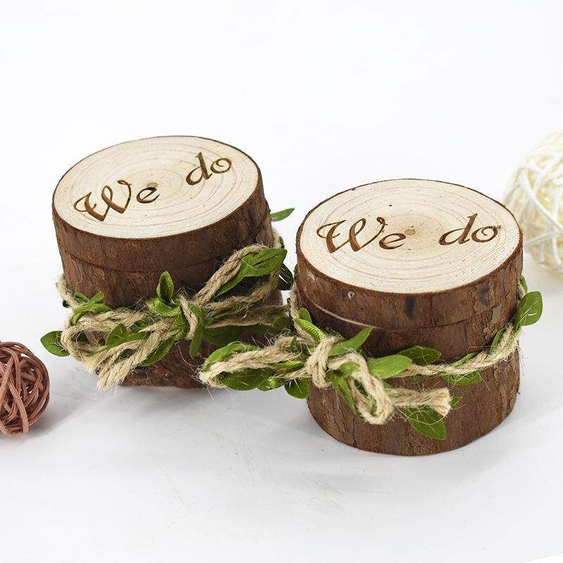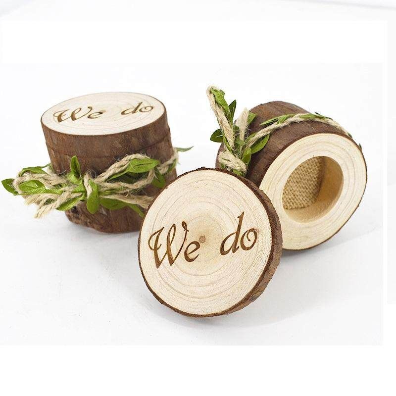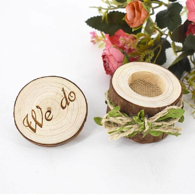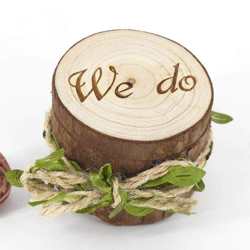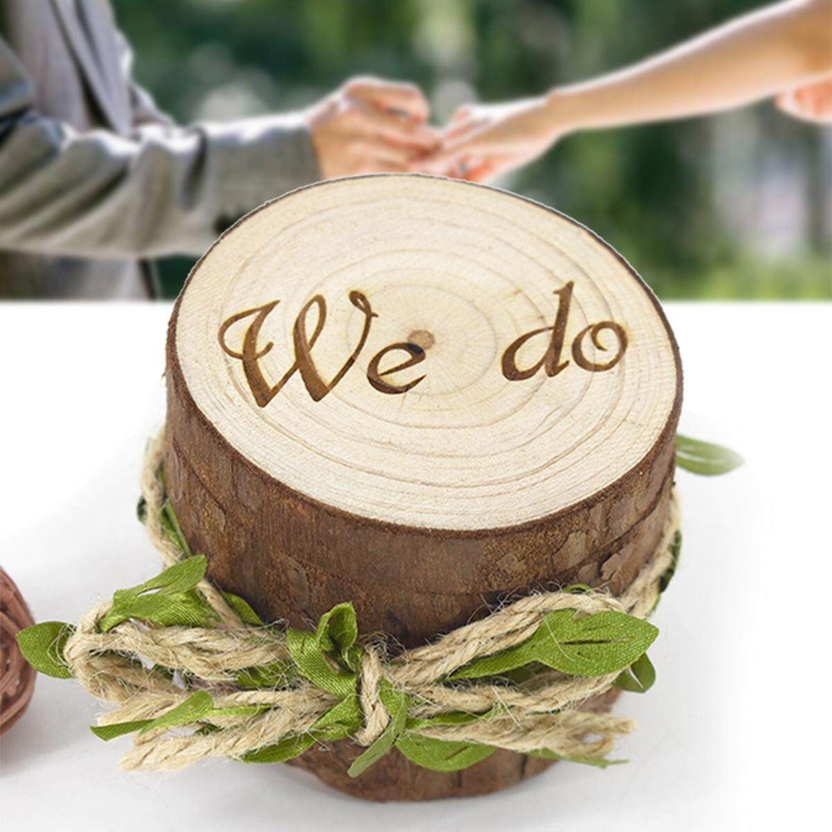 WE DO Wedding/Valentines Wood Ring Bearer Box Holder Round Vintage Rustic Gift