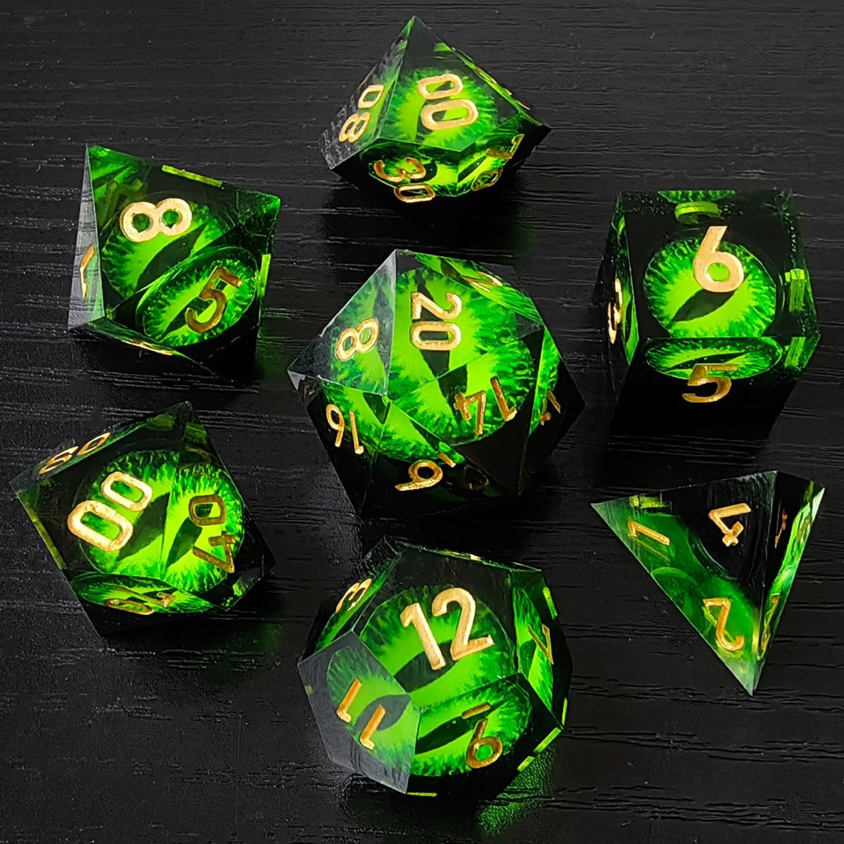 What sets these dice apart is the mesmerizing dragon eye floating within each one. no matter how you roll or spin them, you'll feel the eyes watching you, adding an extra touch of mystery and excitement to your gaming experience.