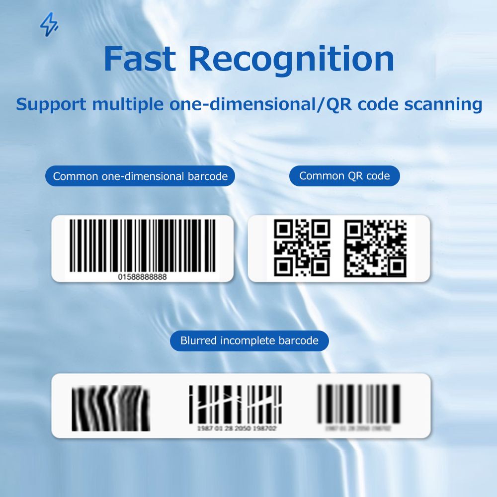 Adopt COMS image sensor, support multiple one-dimensional/QR code scanning.