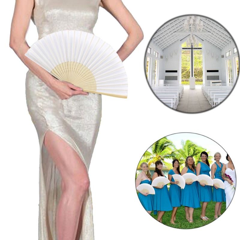 Buy Wedding 10 Promotion Pcs/lot Fan 21cm Color Favor Fabric Hand White Fan, Silk Party Hand in Nigeria