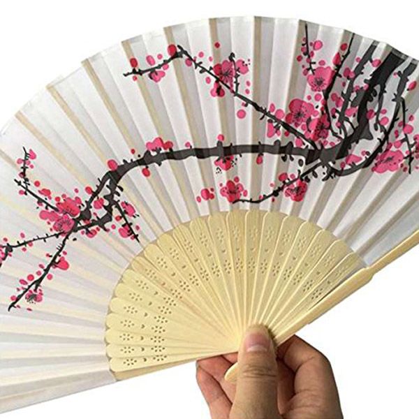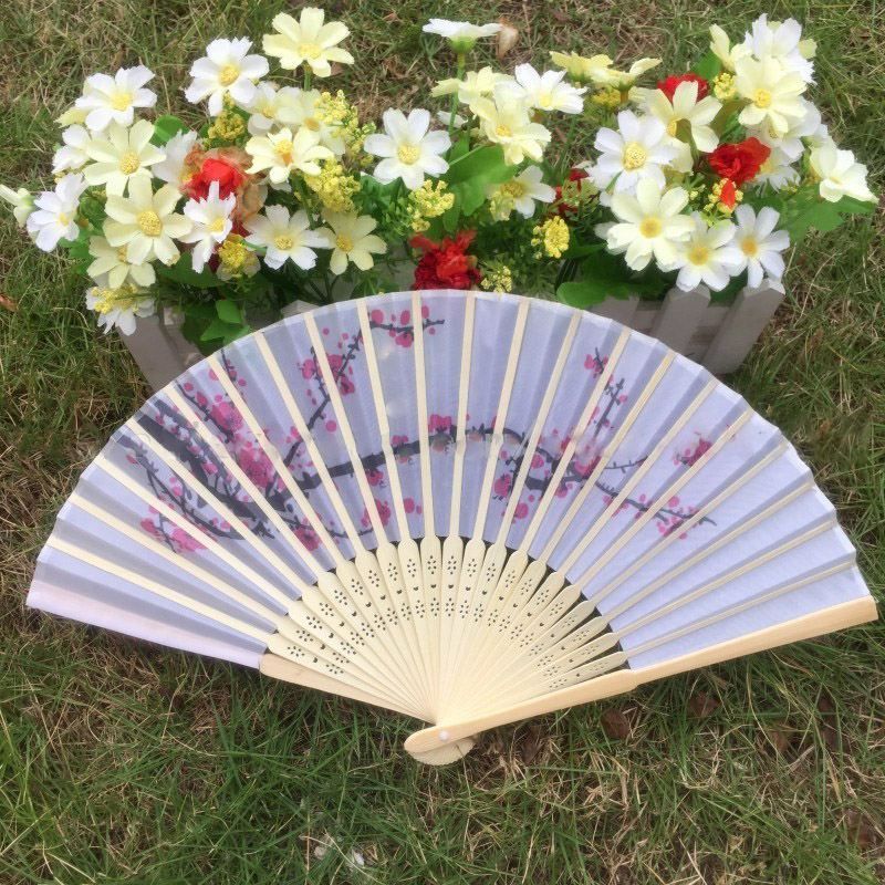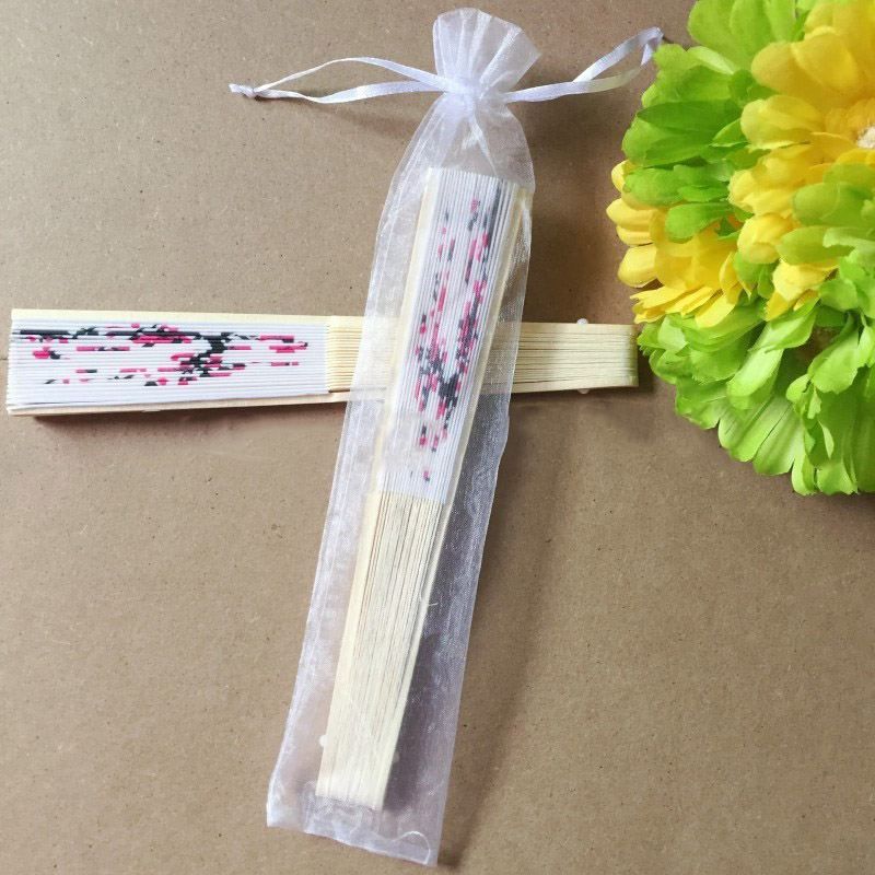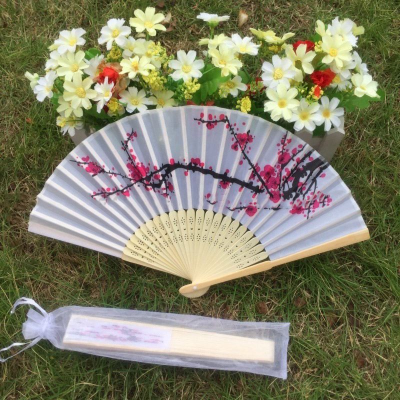 Buy Wedding Bamboo Fan Hand Fan Plum 20pcs/lot Design Silk Elegant Bag Gift With Folding Flower White Organza in Nigeria