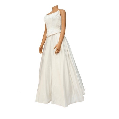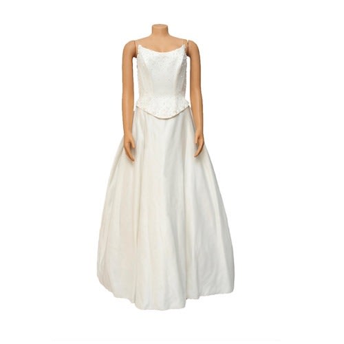 This wedding dress flows down into a stunning designs perfectly placed beaded details to the spagetti strap and bow to the back. It’s romantic, floaty and will make you feel like a grown-up princess, Let it imbue confidence as you float down the aisle or take to the floor for your first dance.