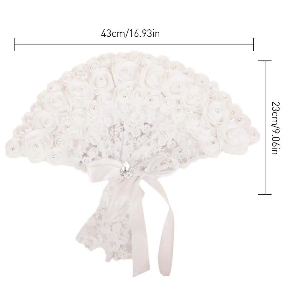 Buy Wedding Bride Handheld Fan Pearls Lace Rose Non-foldable Elegant Fan Wedding Party Supplies Photo Shoot Stage Performance Props in Nigeria