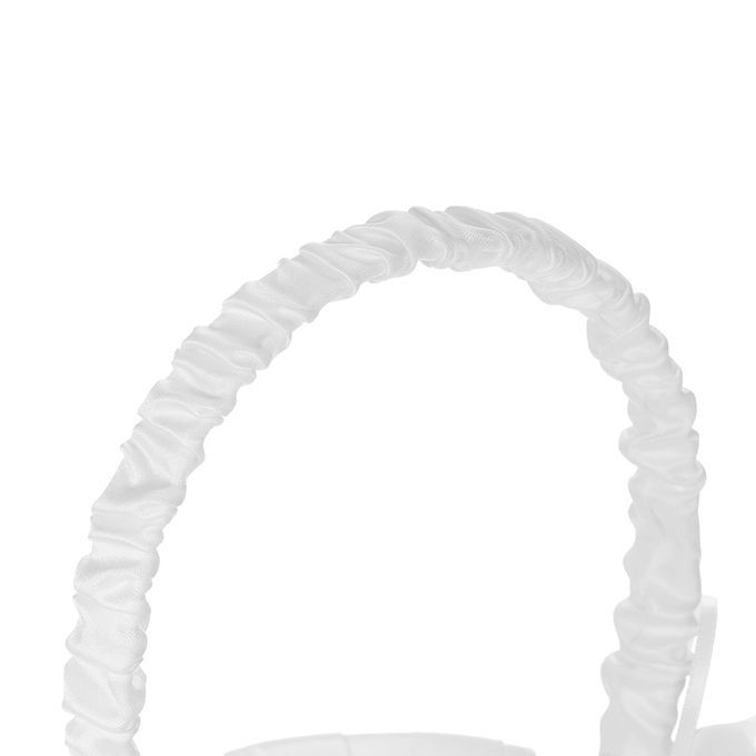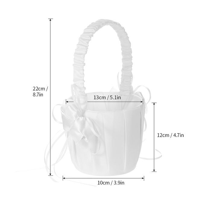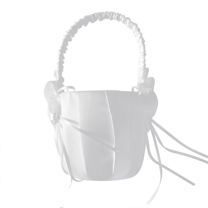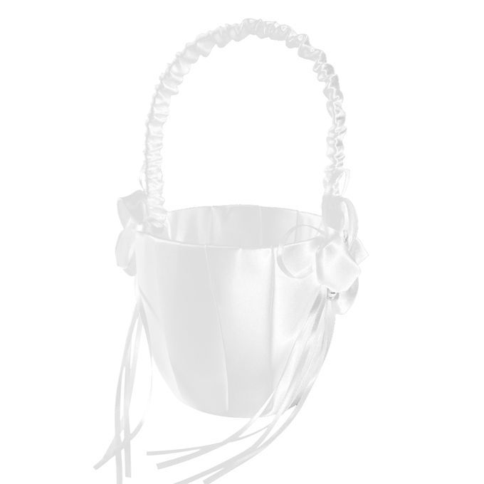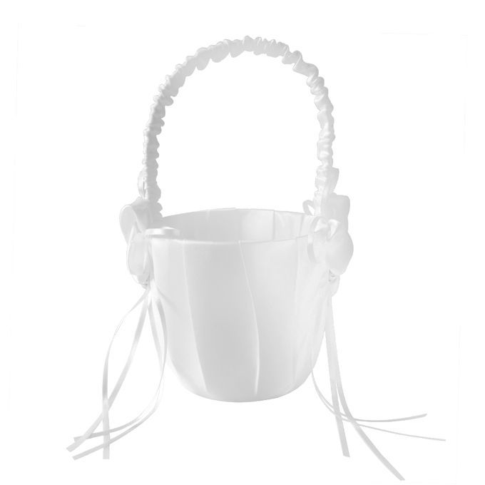 Wedding basket is decorated with bowknots and faux pearl beads.