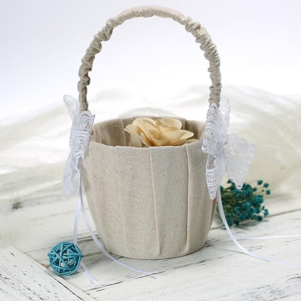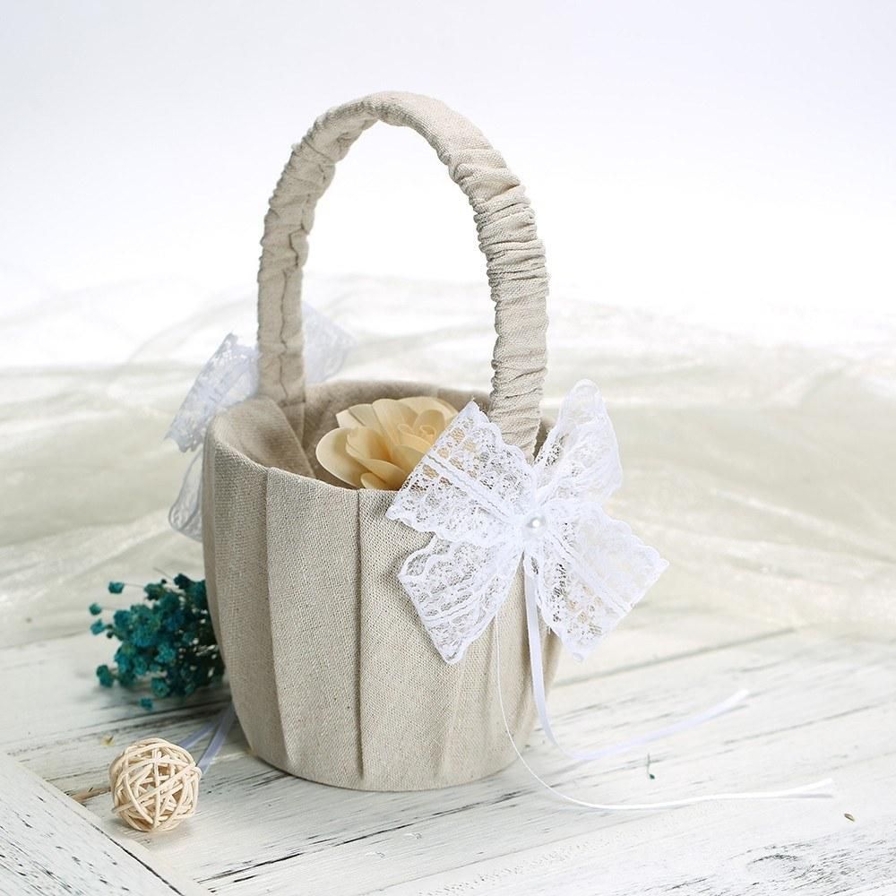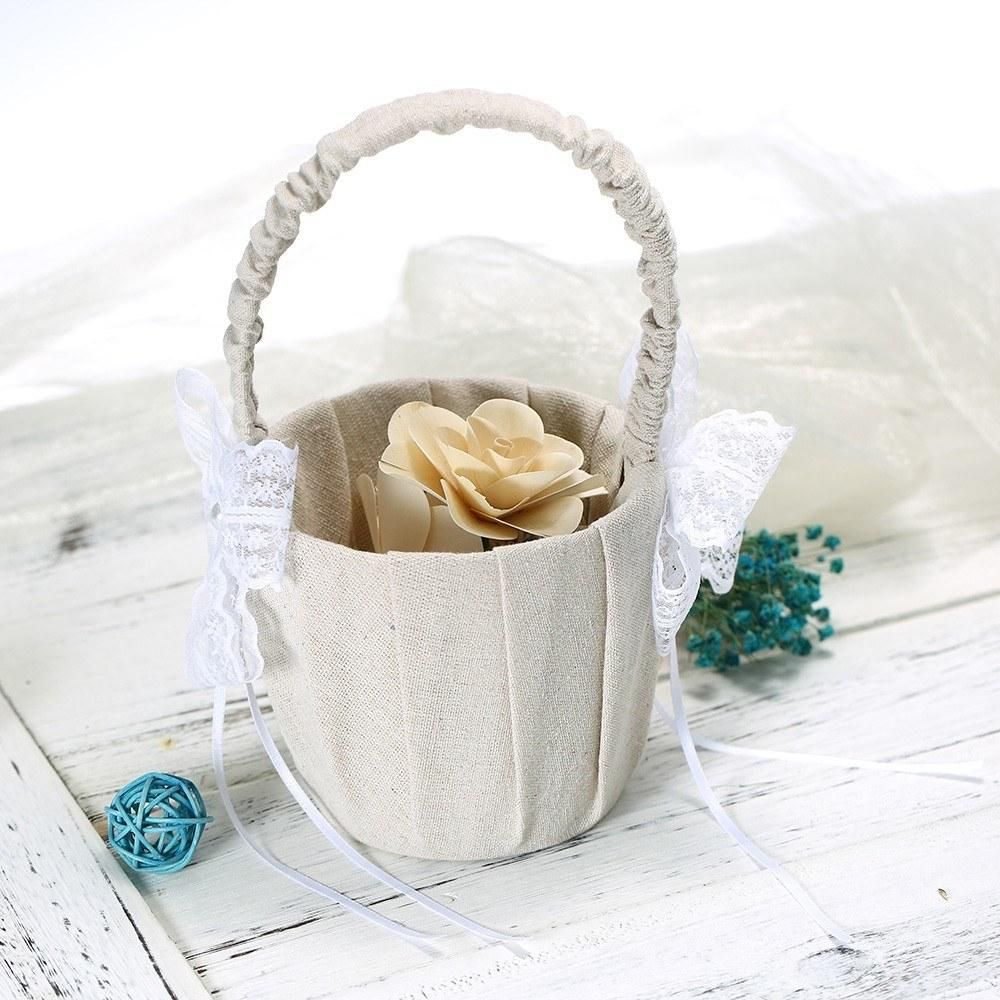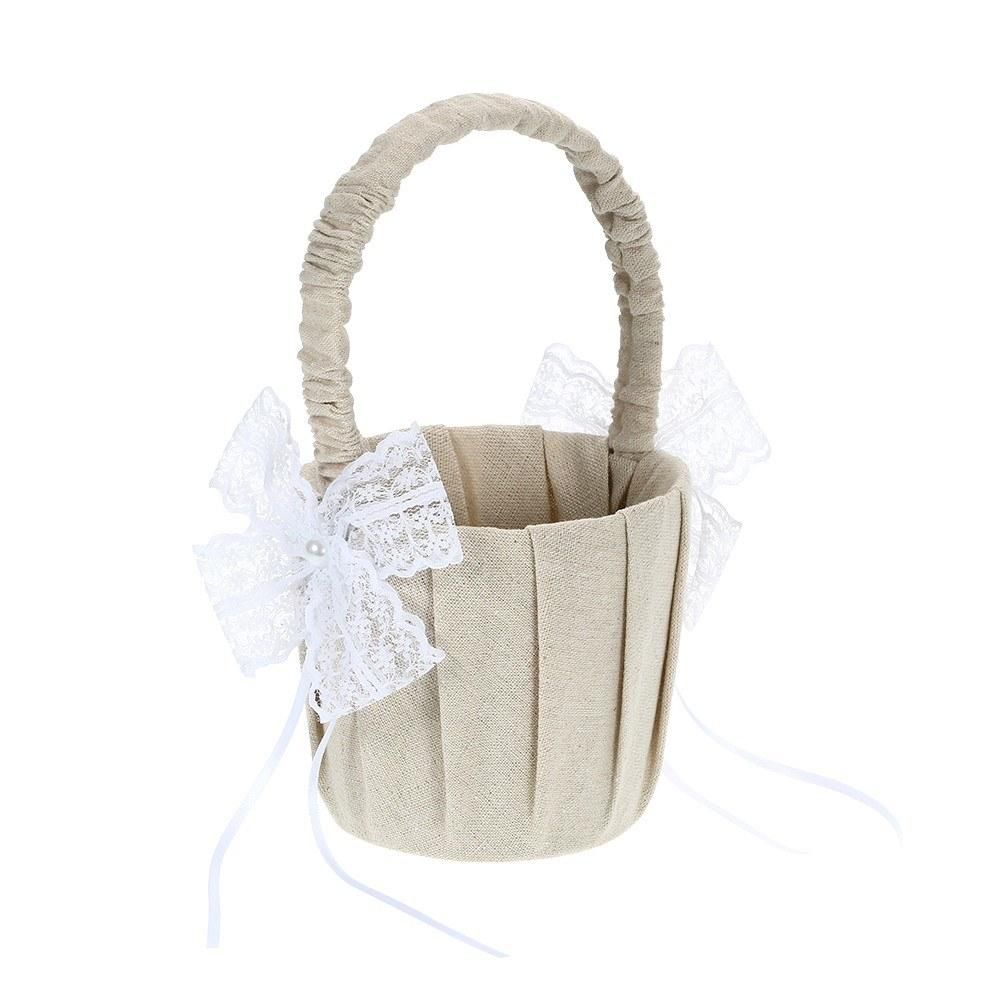 Buy Wedding Flower Girl Basket Vintage Burlap Lace Bowknot Flower Basket Wedding Basket in Nigeria