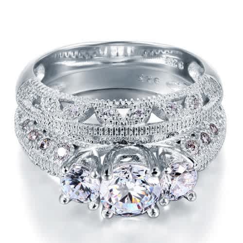 Looks Super dazzling on your wedding day and the wonderful days after with this beautiful set of high quality sterling silver wedding rings. Featuring two crystal encrusted rings for the bride and a brilliant silver ring for the groom.