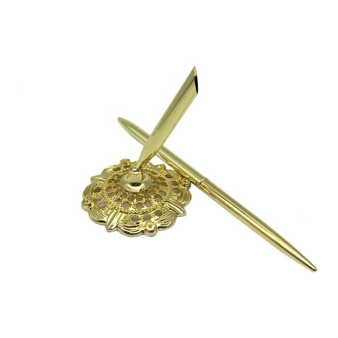 The ball-point pen(black ink) and Hollow Gold Plated Metal Pen Holder Party Pen Set.