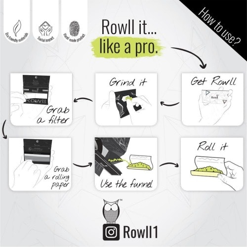 Rolling InstructionsOpen the roller, Place the filter at the shallow side of the little mat and fill the roller with your favorite tobacco/herb, ensure even distribution, to just under the rolls.Close the roller and use both thumbs to roll