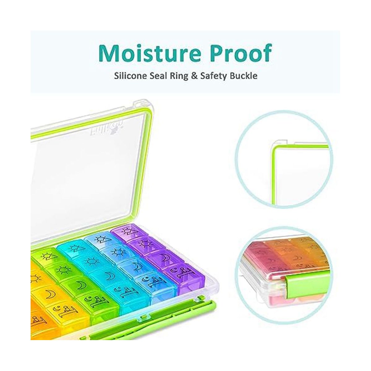 Moisture Proof - Vitamin organizer 7 day with moisture-proof silicon seal design for pill freshness. Keep your pills in perfect condition at all times!
