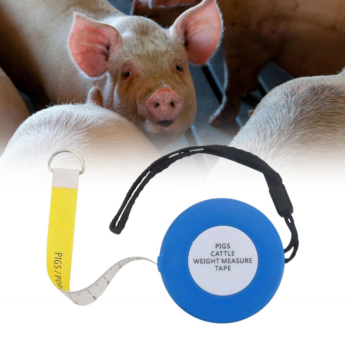Estimate body weight by measuring (pig, beef, dairy) bust. At the push of a button, the tape retracts automatically, very convenient