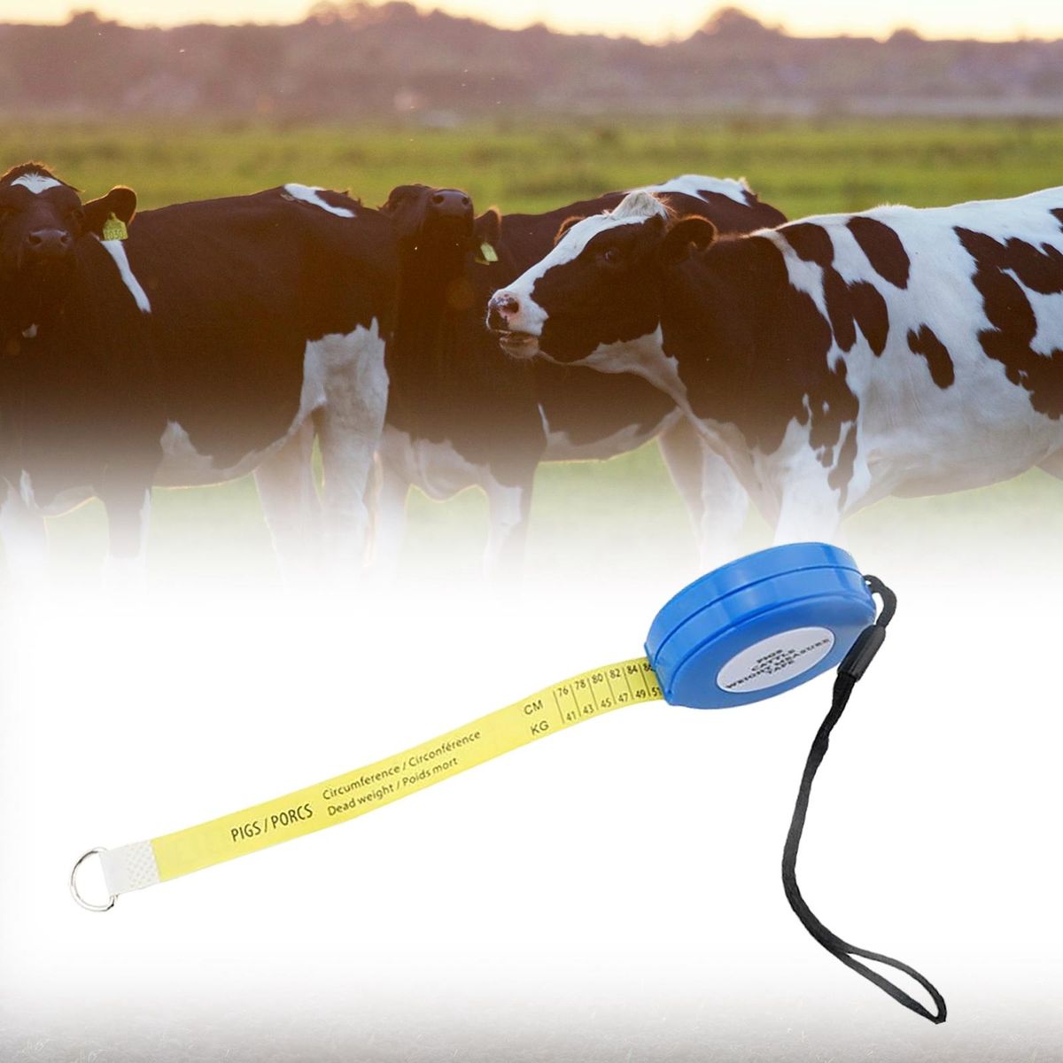 Material: ABS shell + fiberglass tape, measurable range: 268kg to 1080kg for beef cow, 35kg to 1000kg for dairy cow
