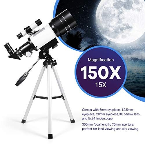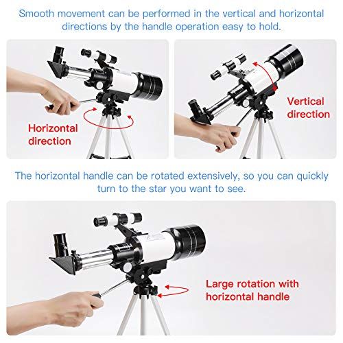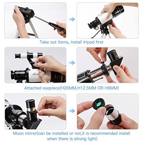 - Travel telesope with bakpakThis star gazing telesope omes with bakpak, whih holds the mm telesope,tripod, phone adapter. Other aessories like eyepiees and barlow lens and so on are plaed separately in a small bag inside the bakpak in order to stop from abrasion. This travel telesopes is quik and easy to set up in minutes even for novie.