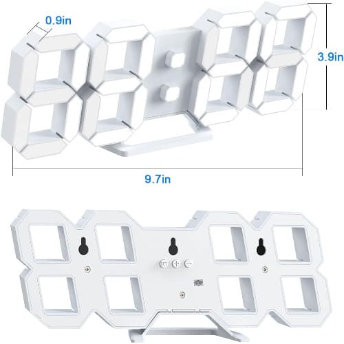 Package Included: 1 x Multi-Function Large 3D LED Digital Wall Clock Alarm Clock 1 x 1M USB Cable 1 x Full Manual 1 x Battery 1