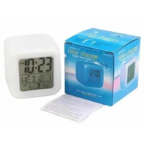 LED time(12/24 hour system adjustable), date and centigrade temperature and fahrenheit temperature display.Three brightness modes adjustment, the brightness can be adjusted automatically or manually.Alarm function and snooze function, the alarm sound is beep which lasts for about 1min, during the alarming time the beeping sound weakens gradually. Snooze time is 5mins by default.USB , external -off protection function, convenient and practical.You can place it on your table, desk or hang it on wall at your home and office.Black and white outer shell, white, red, green, blue, pink, orange diaplay colors for you to choose from.