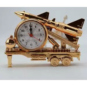 Main clock has black tyres, light gold seating and metal color engine.