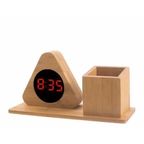 Wooden Desk Clock can be the primary choice for your bedroom decor. Compared with plastic products, you can always see its inherent vitality and nobility. Your room deserve to have such a stylish and practical clock.Temperature and Humidity Display Clock is a good helper to create the most comfortable indoor environment for you, which is necessary for the health of each of us. So what reason do we have to reject it?Sound or touch control function allows you to keep up with the trend of smart home appliances. Once this function is turned on, the display will only be lit when you touch it or give it a sound volume greater than 60 decibels. That is to said, LED display only show up when you need it.Adapter (included) Plug in Powered with Backup Battery.From the perspective of energy saving and environmental protection, we recommend the first choice of adapter power supply, at the same, you can equip the clock with 4 AAA backup batteries to prevent it from working normally when the power is cut, so that your life rhythm will not be disturbed by the power cut.Three Settings Alarms with weekdays mode. Three settings of alarms can be set in one day to better WAKE you up, and the function of working only on weekdays can be turned on, which means the alarm clock will ring only on Monday to Friday. Of course, you can also set only one or two sets of alarms, or even turn off all alarms.Automatic or Manual Dimming Function. The LED display will automatically dim to 5% at 6 o'clock in the afternoon every day, and automatically brighten to 100% at 6 o'clock in the morning the next day. This is designed according to people's work and rest time. On the one hand, it avoids the strong night light from affecting our night rest, on the other hand, it is convenient for us and also plays a role in saving electricity.Three Level Adjustable Brightness allows you to adjust from low to high brightness, or even turn off the LED light and keep it sound sensitive. It & rsquo;s user friendly at night, which won & rsquo;t be too harsh for your eyes. Stylish appearance and multiple functions make it suitable as a gifts for kids.