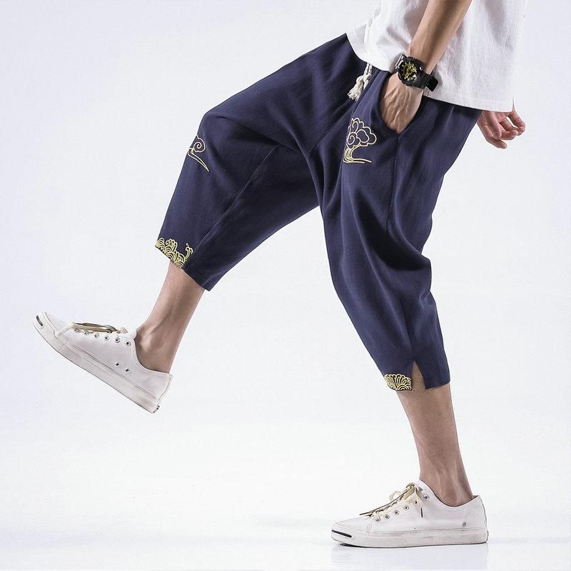 1X Pantalones de chandal holgados para hombre ropa de calle de algodon y lino con bordado Harem pantalones para trotar informales pantalones de Fitness de talla grande 5XL verano 2021